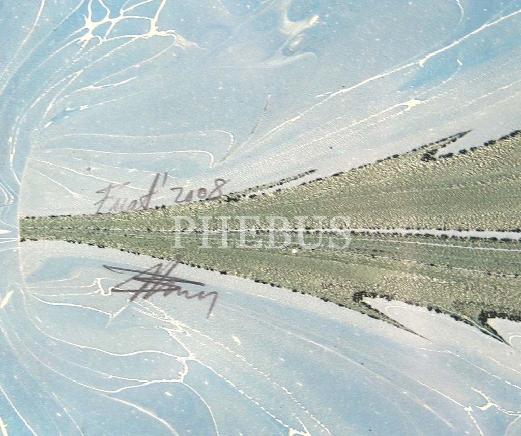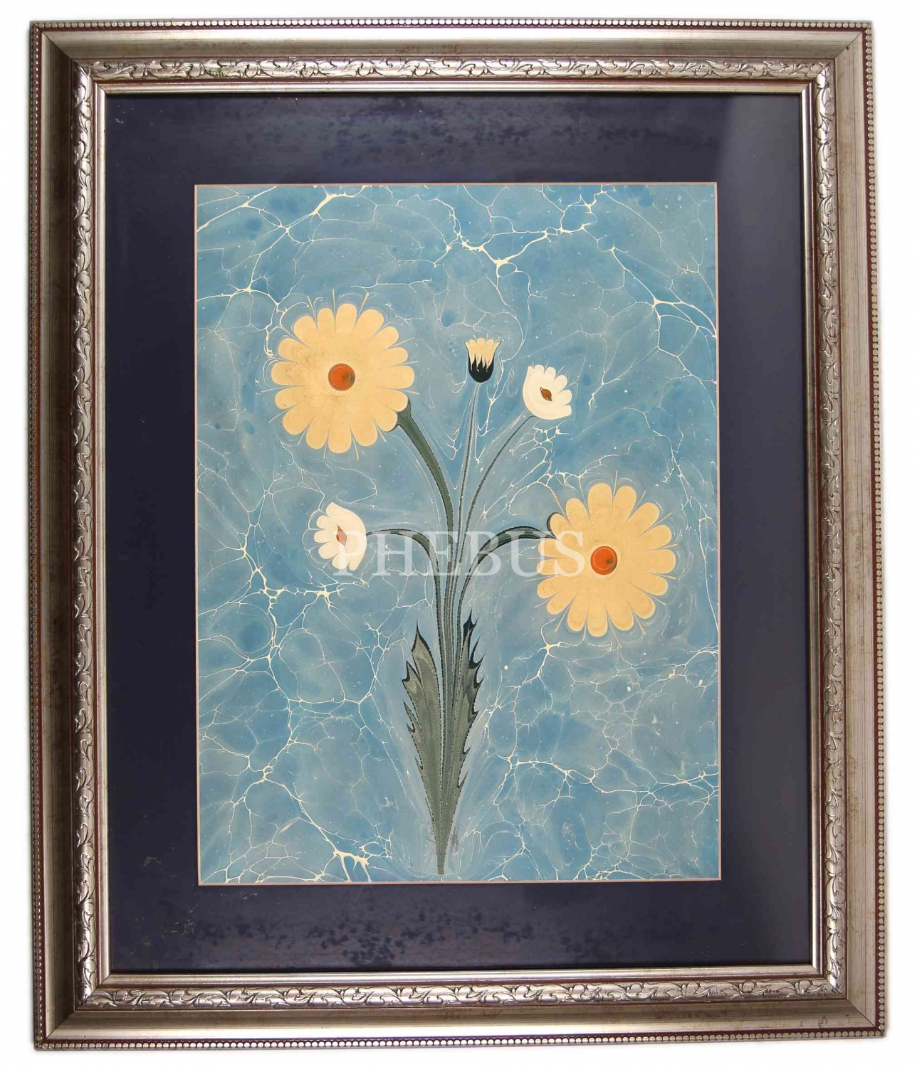 Fuat Başar Islak İmzalı Papatya Ebru, çerçeveli, 31x42 cm