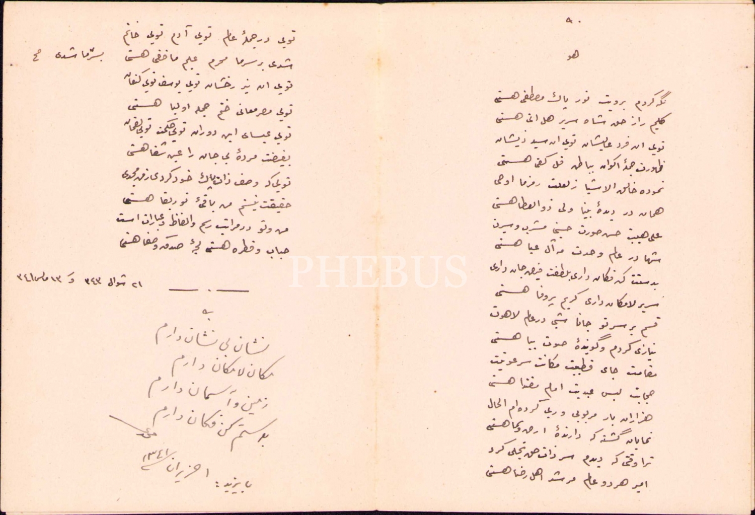 Süheyl Ünver'in El Yazısıyla Mutasavvıf Şair Mecdi Tolun'a Ait Farsça Bir Şiir, 1341 Tarihli, 3 sayfa, 11x5 cm