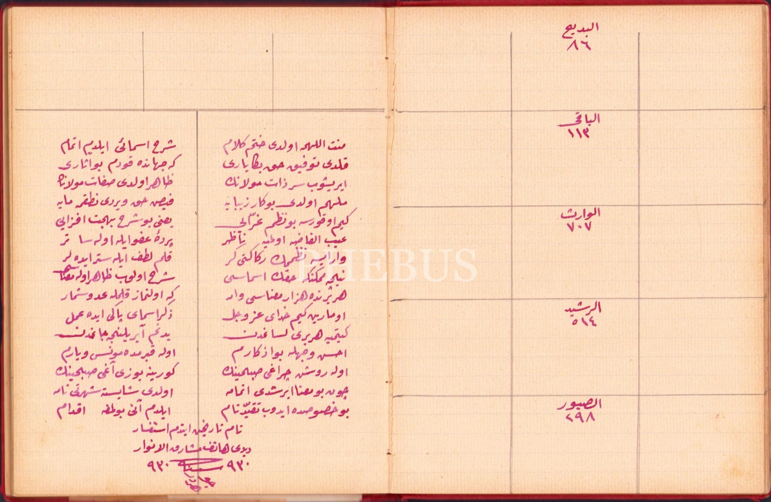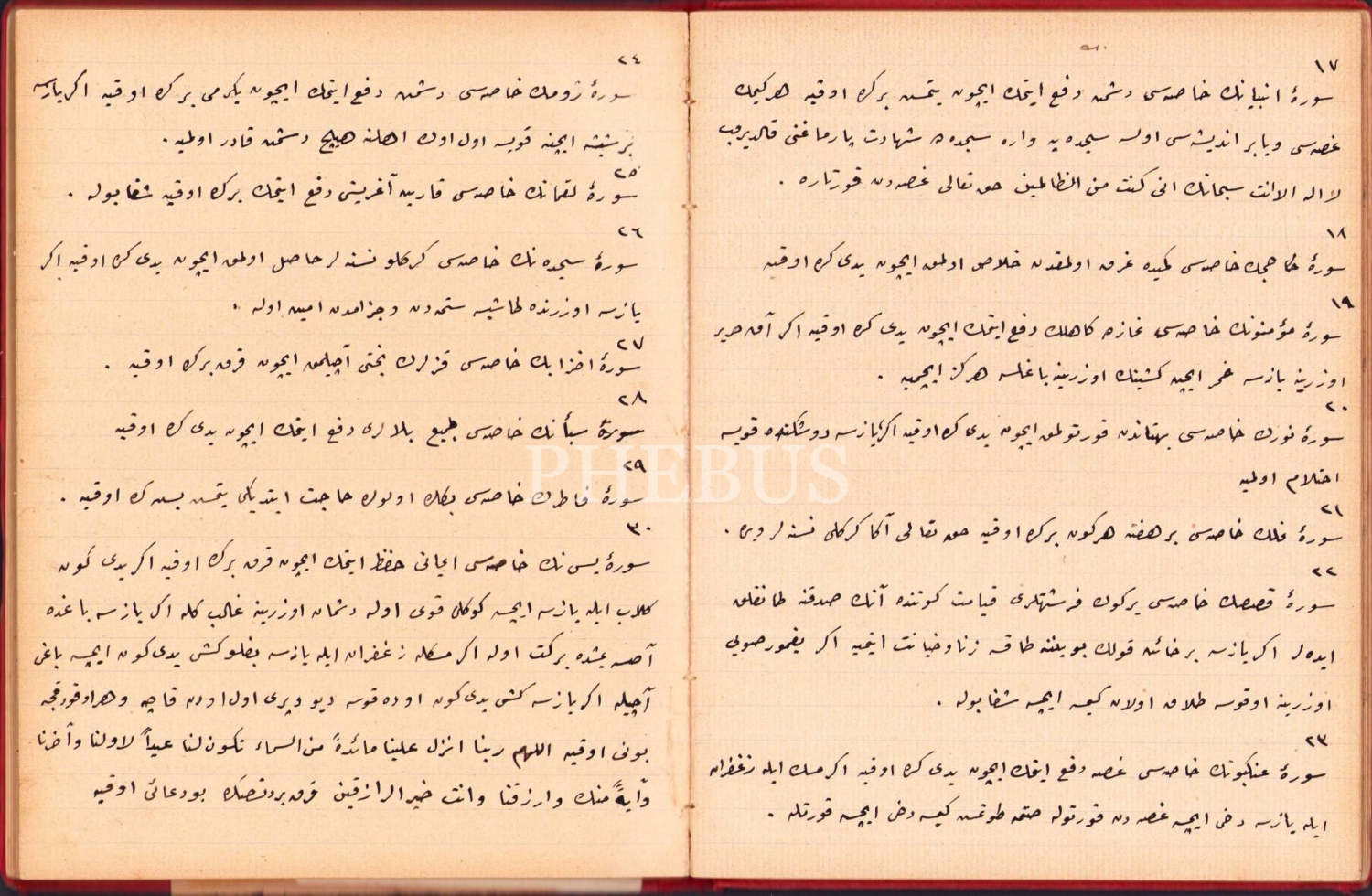 "Ziyâret ve İâde-i Ziyâret", "Kartvizit", "Hanenin Odaları Hakkında Bir İki Söz" Başlıklı Yazılar ile Esmâ-i Hüsnâ ve Dinî Soru-Cevaplar İçeren El Yazması Mecmua, 56 varak, Osmanlı armalı cildinde, 17x23 cm