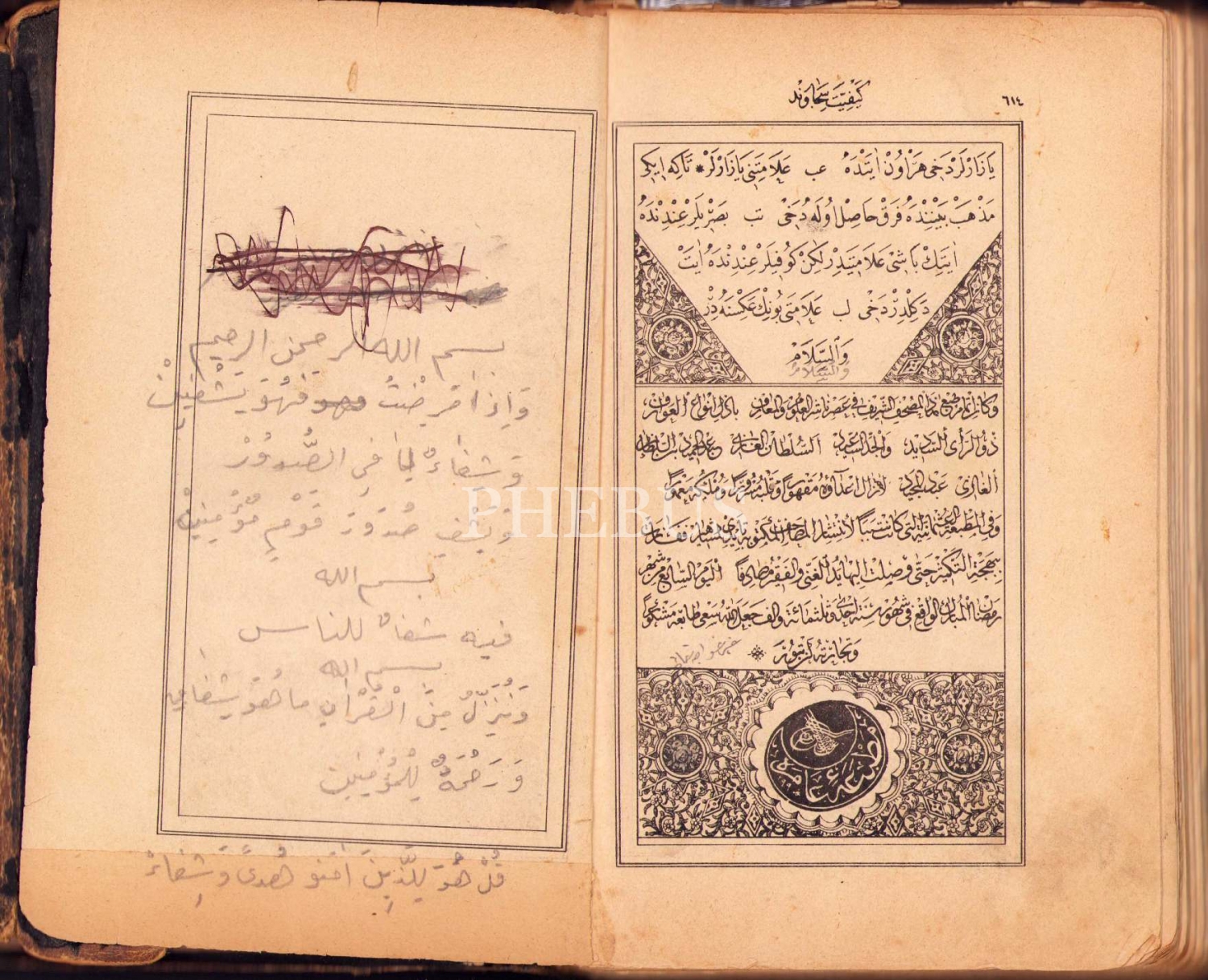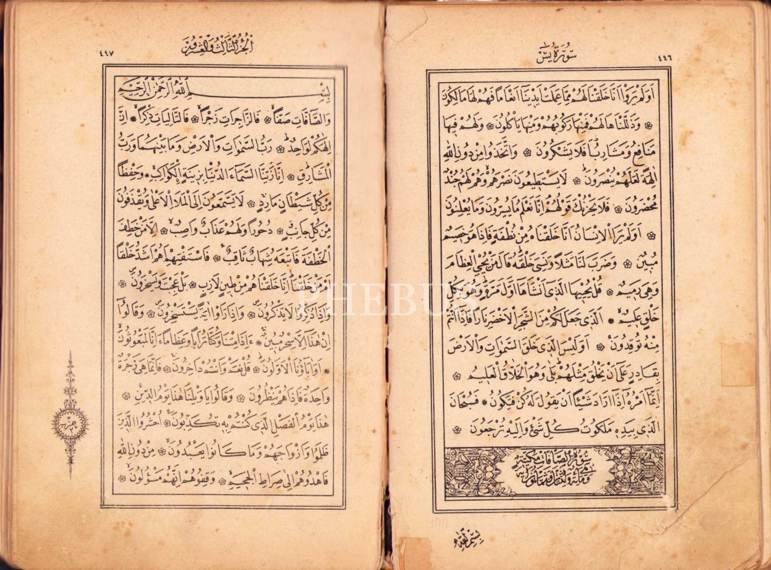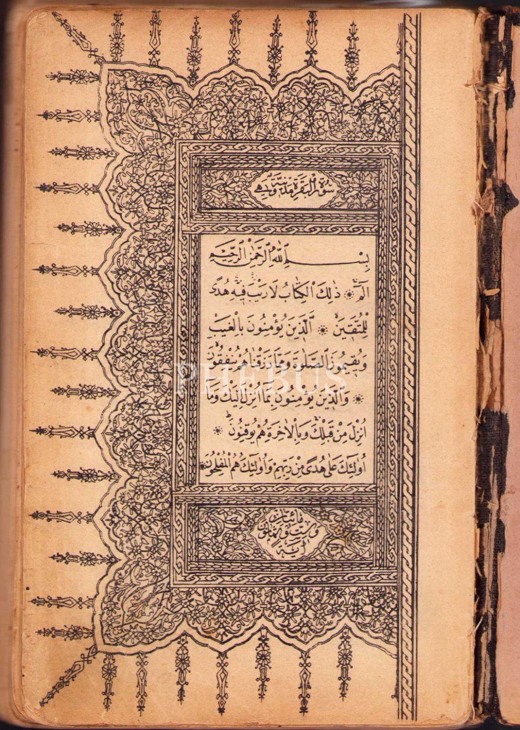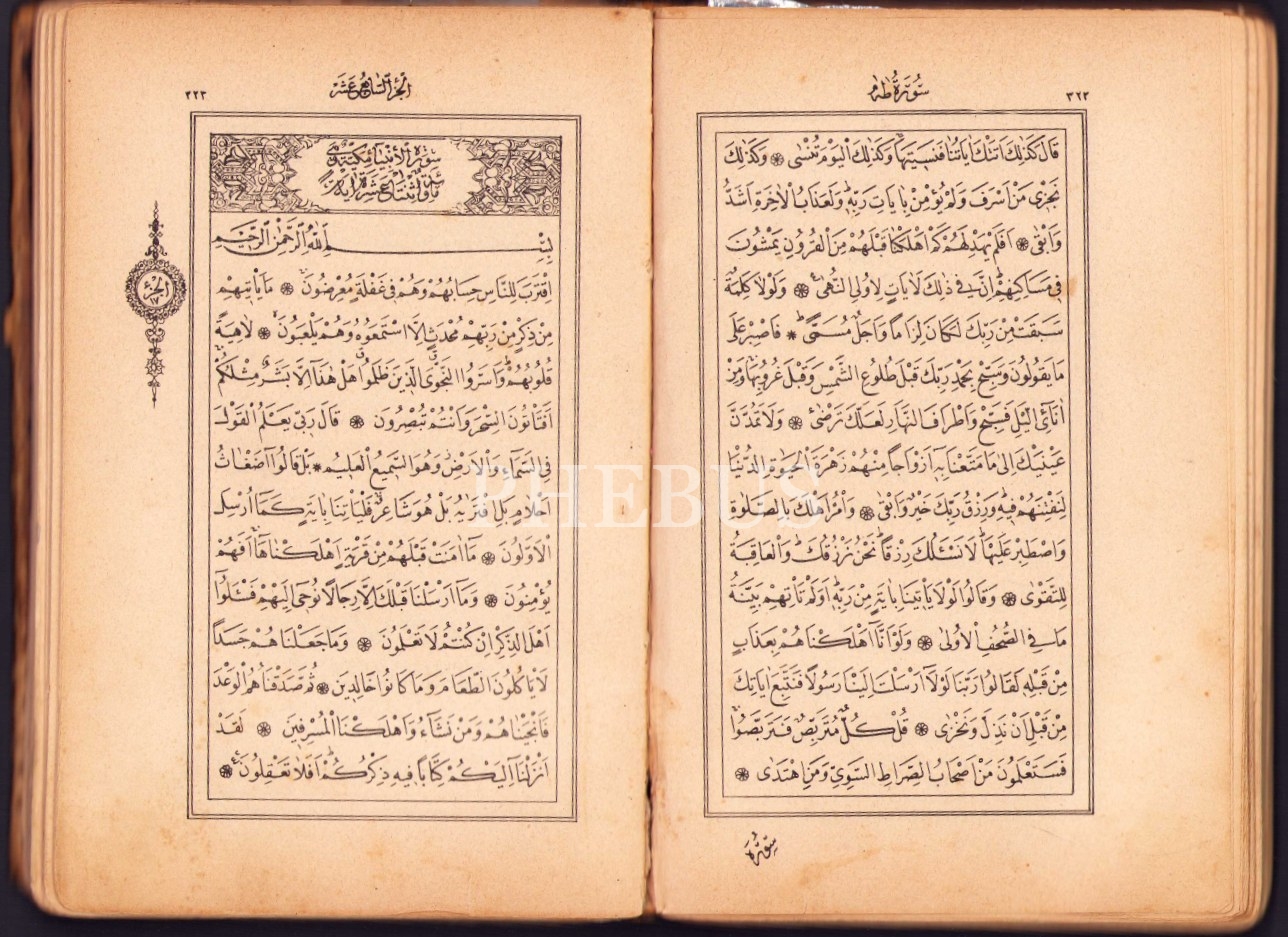 Matbu Kur'ân-ı Kerîm, Amire Matbaası, 1301 tarihli, cildi nakışlı, Fâtiha Sûresi sayfası eksik haliyle, 13x20 cm