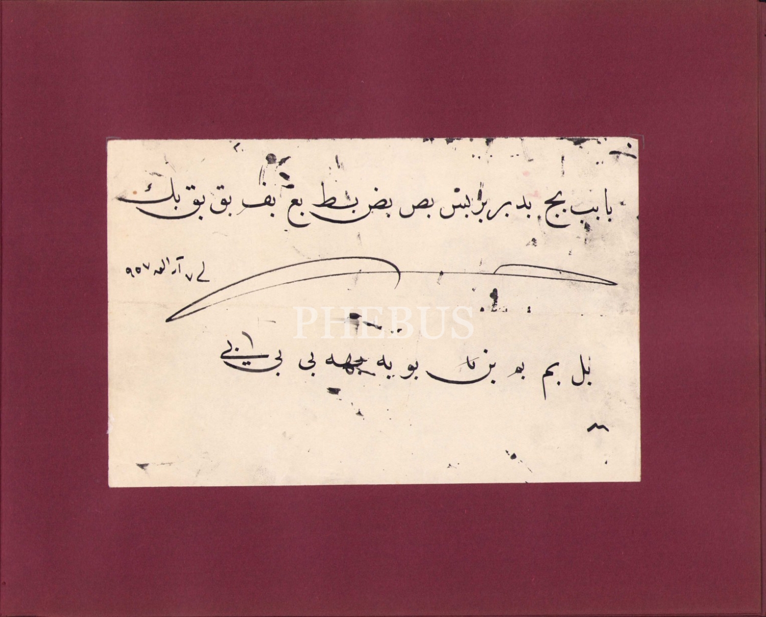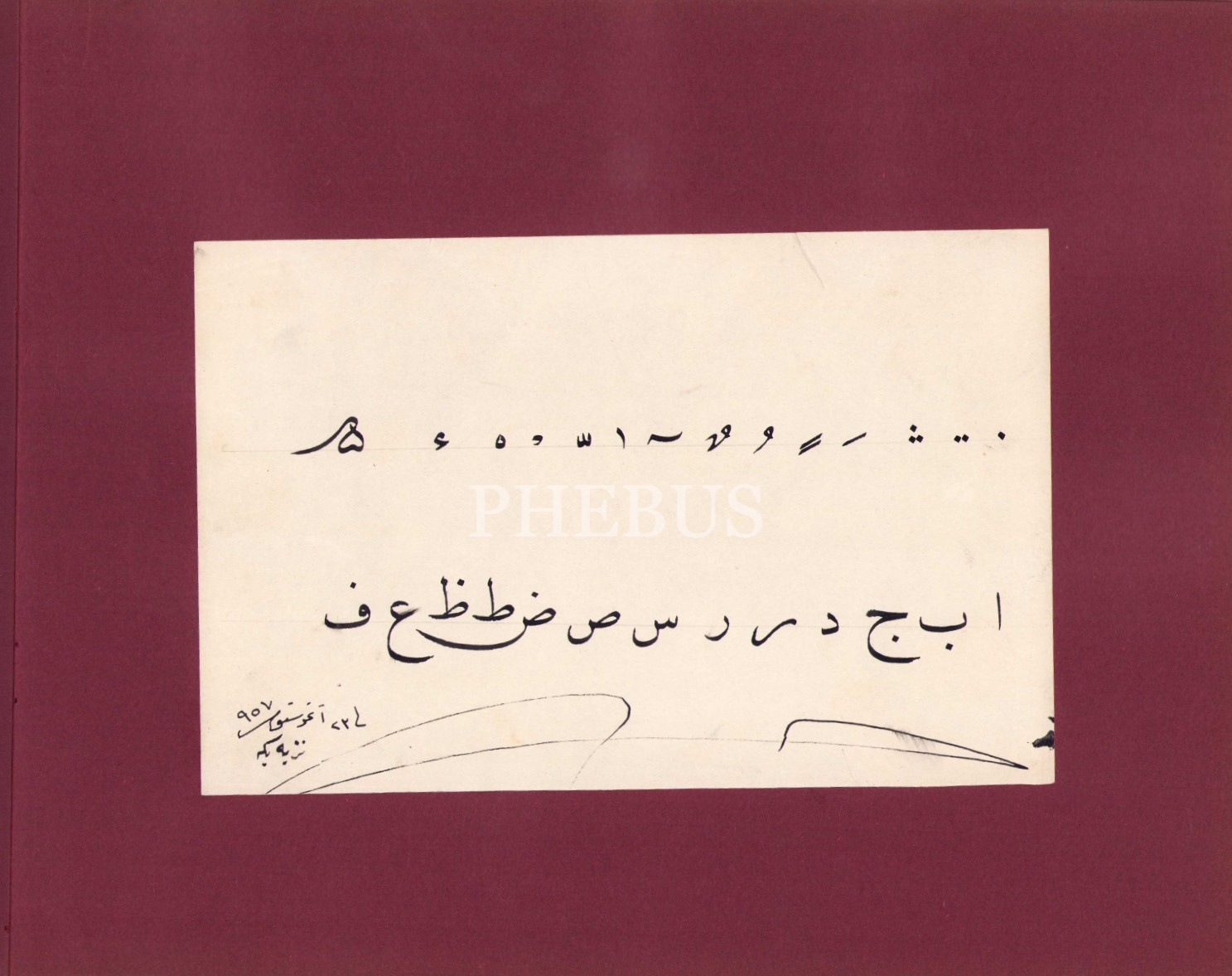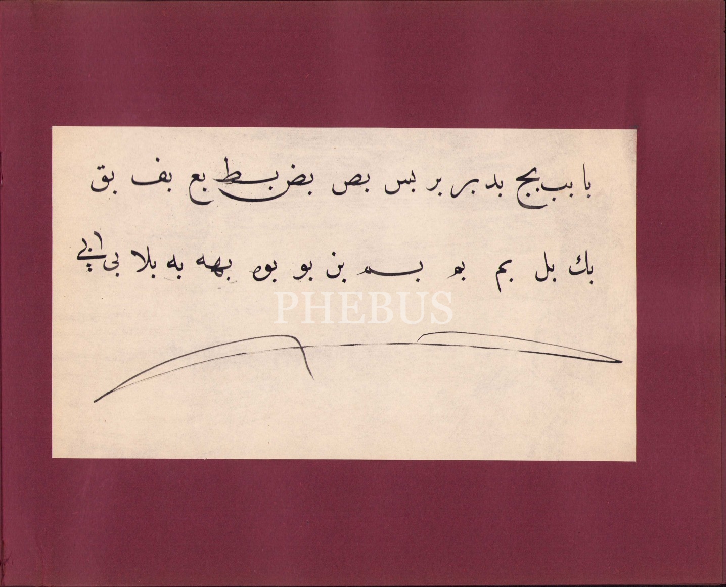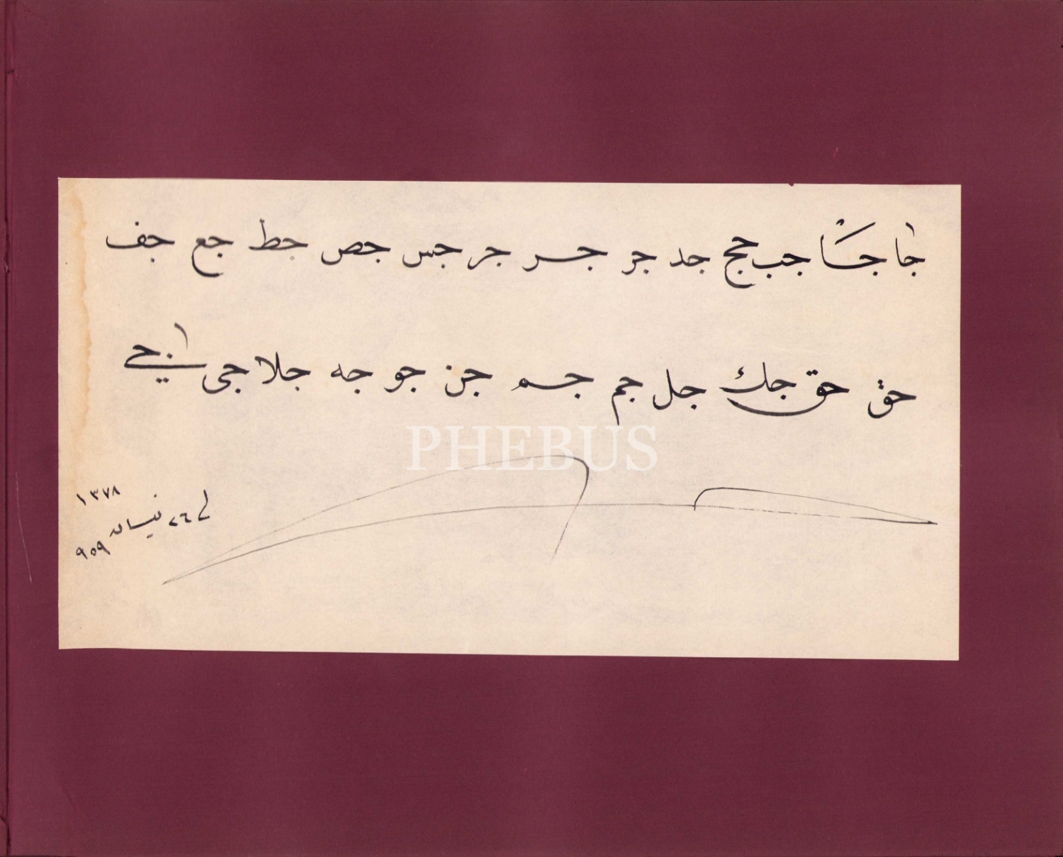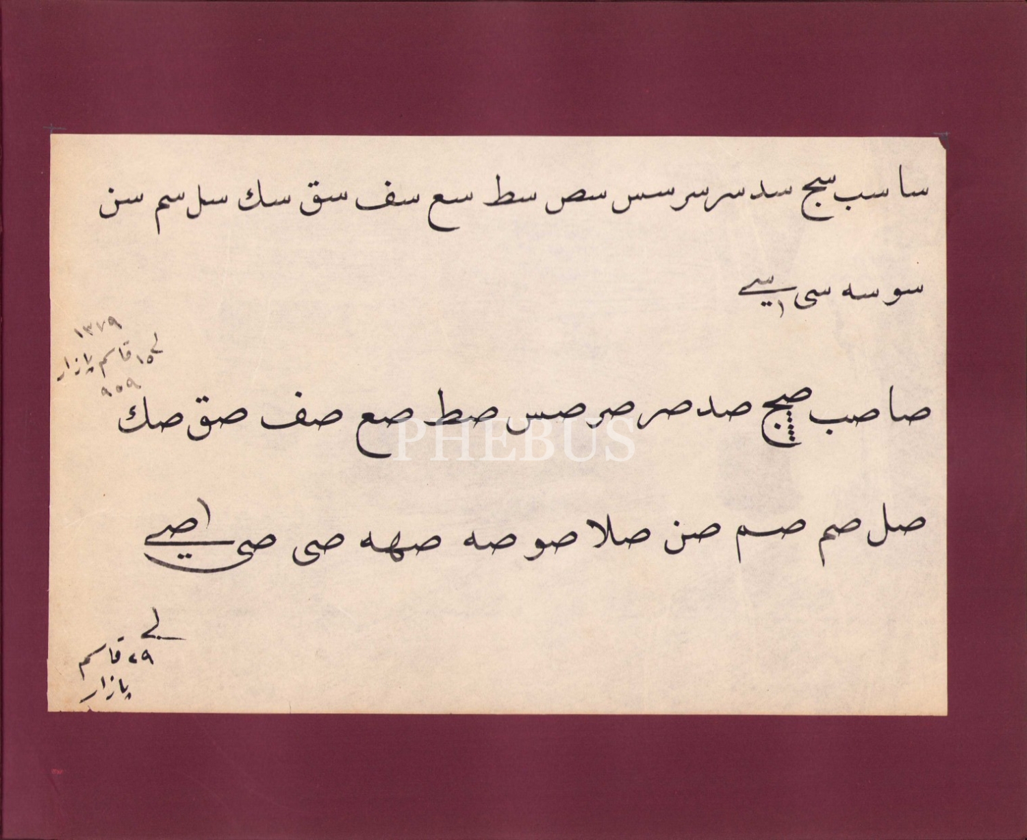 Bekir Pekten Tarafından Nezih Uzel'e Yazılan 1957 ve 1959 Tarihli 6 Sayfa Nesih Hurufât Meşki Dosyası, ilk sayfada "Nezih Bey'e" notu mevcut, 24x31 cm