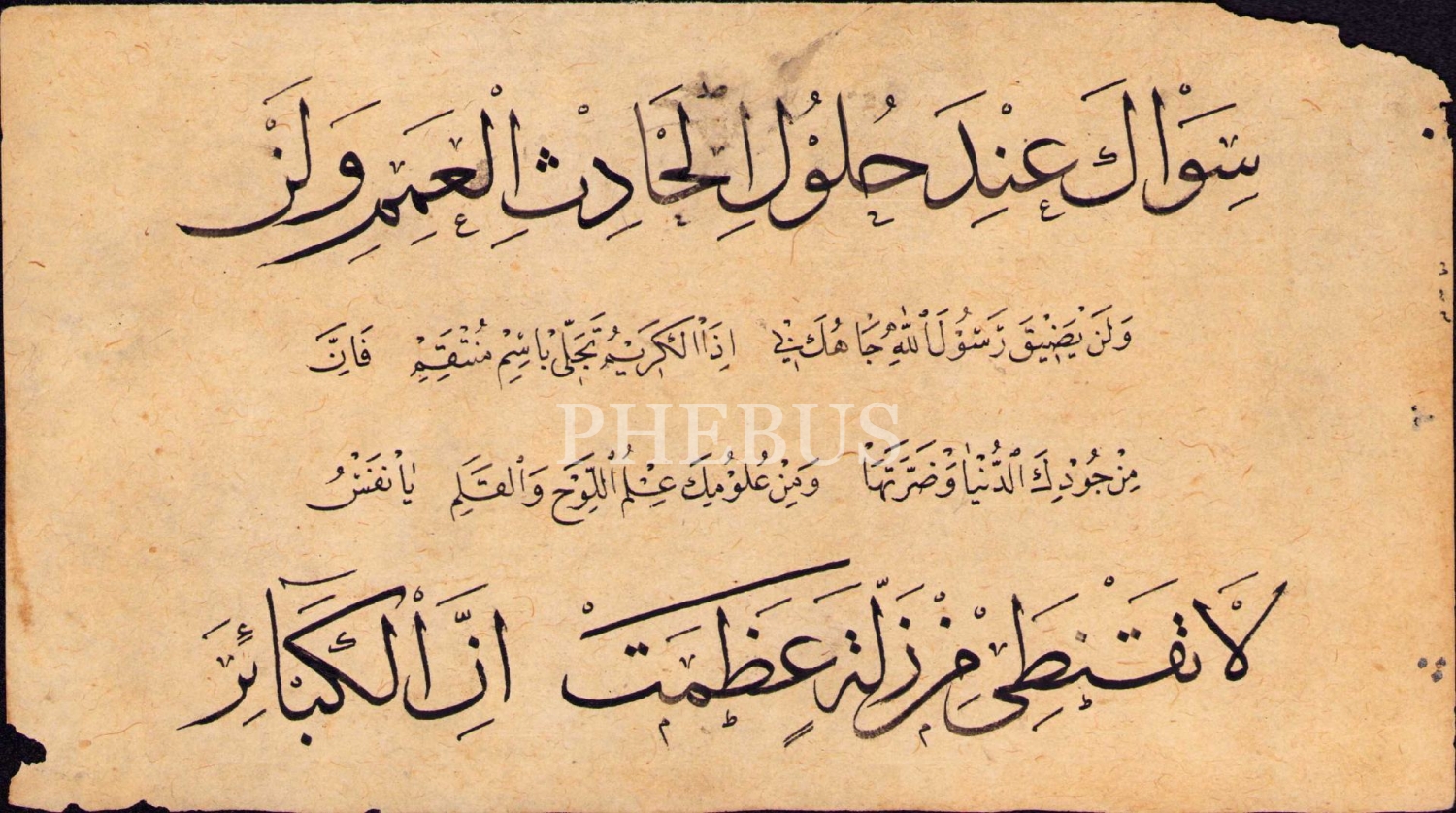 Hoca İşi Sülüs-Nesih Meşk, köşeleri yıpranmış haliyle, 12x23 cm