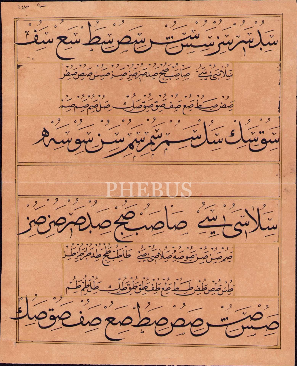 Sülüs-Nesih Hurufât Meşki, birleşik hâlde iki parça, cetvelli, 22x27 cm