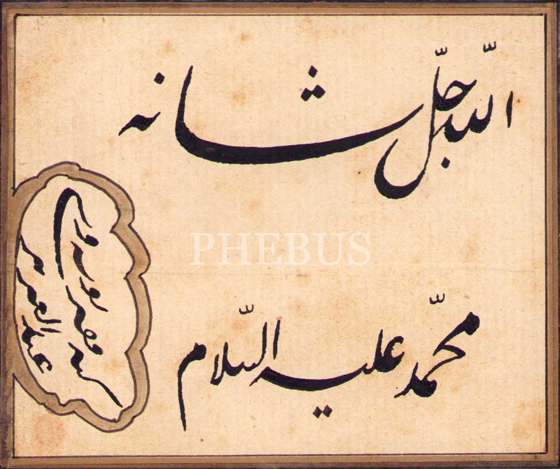 Bosnevî Abdülaziz Ketebeli Ta'lik Allah ve Muhammed Zikri, 7x9 cm