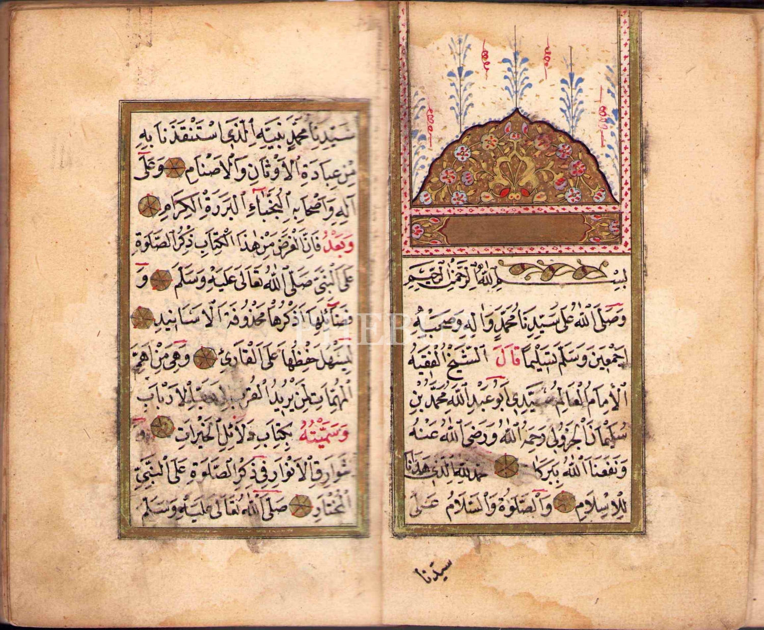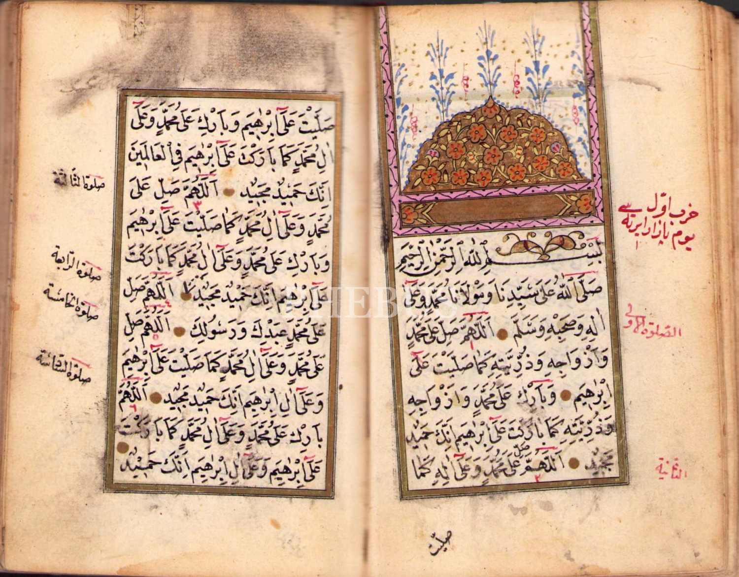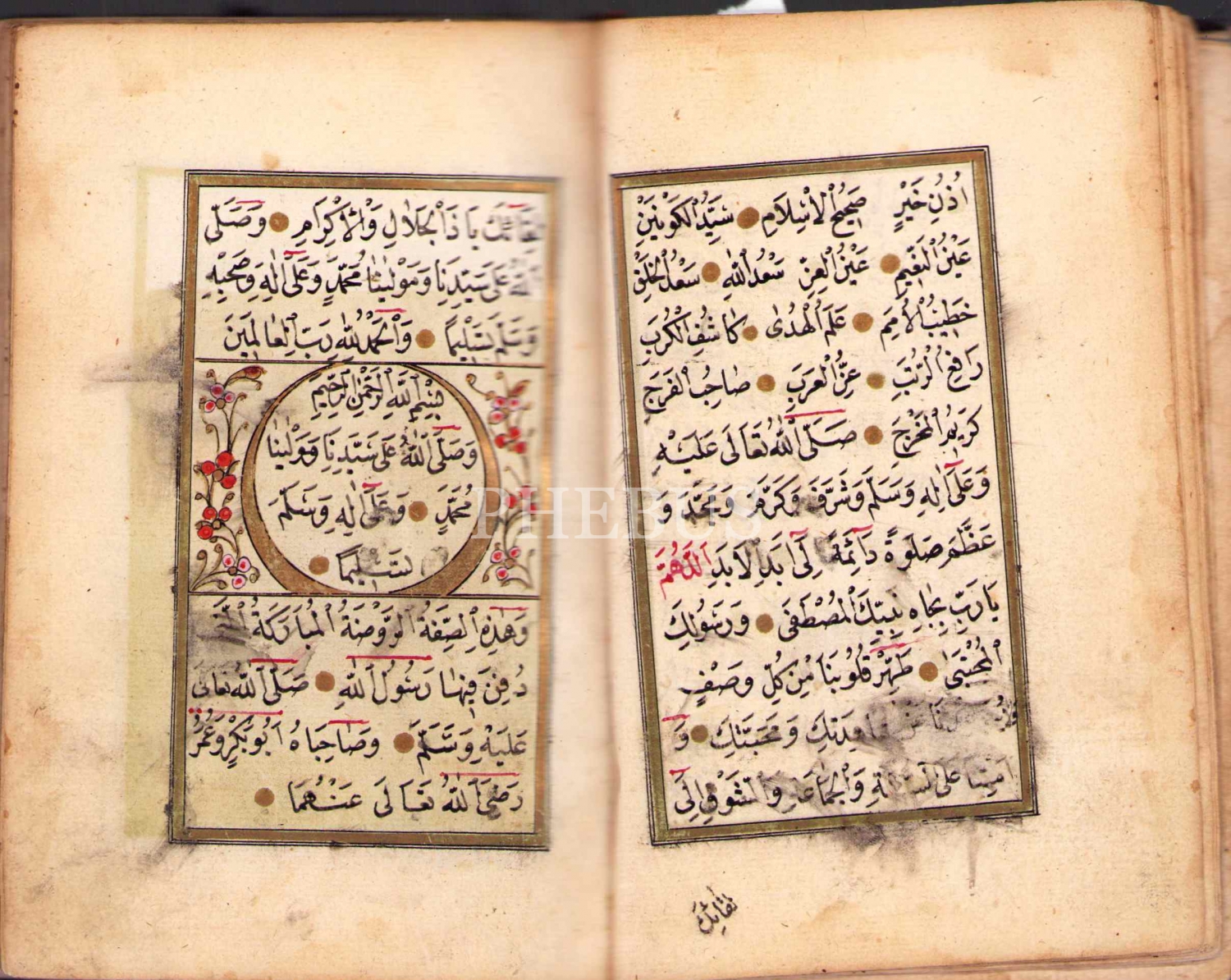 El Yazması Delâil-i Hayrât, Muhammed b. Süleyman el-Cezûlî, 1162 tarihli, şemseli ve salbekli deri cildinde, 10x6 cm