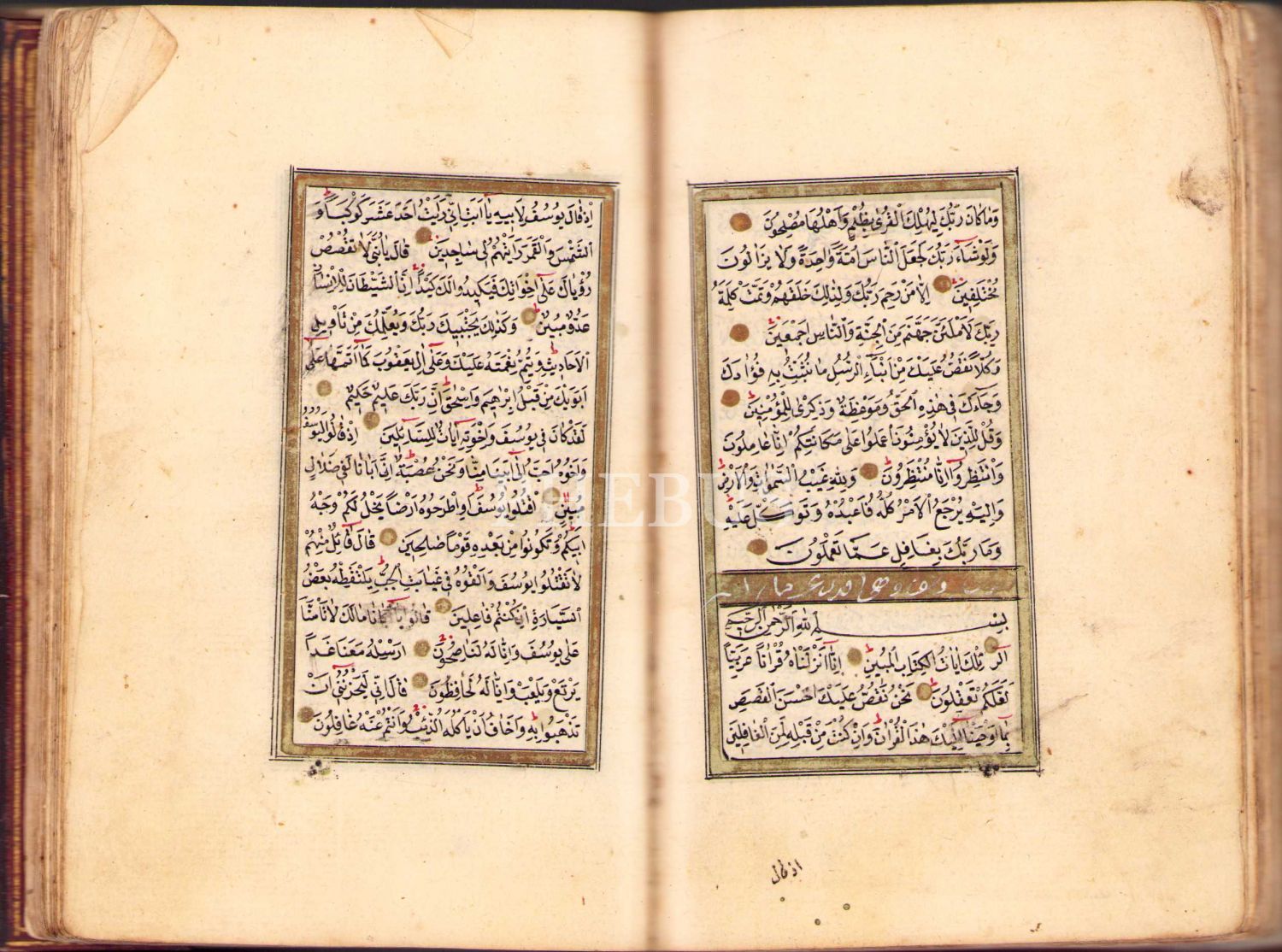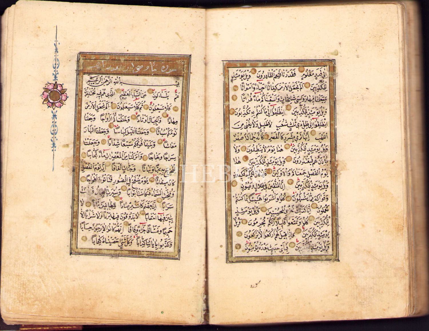 El Yazması Kur'ân-ı Kerîm, Abdullah el-Vasfî ketebeli, tezhipli ve şemseli salbekli deri cildinde, 10x15 cm
