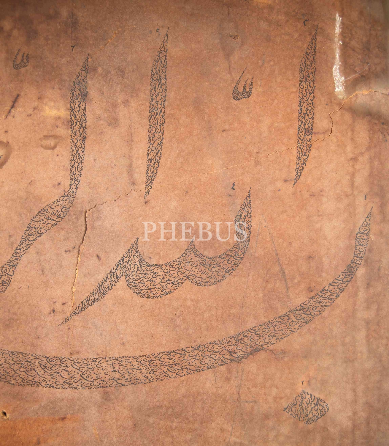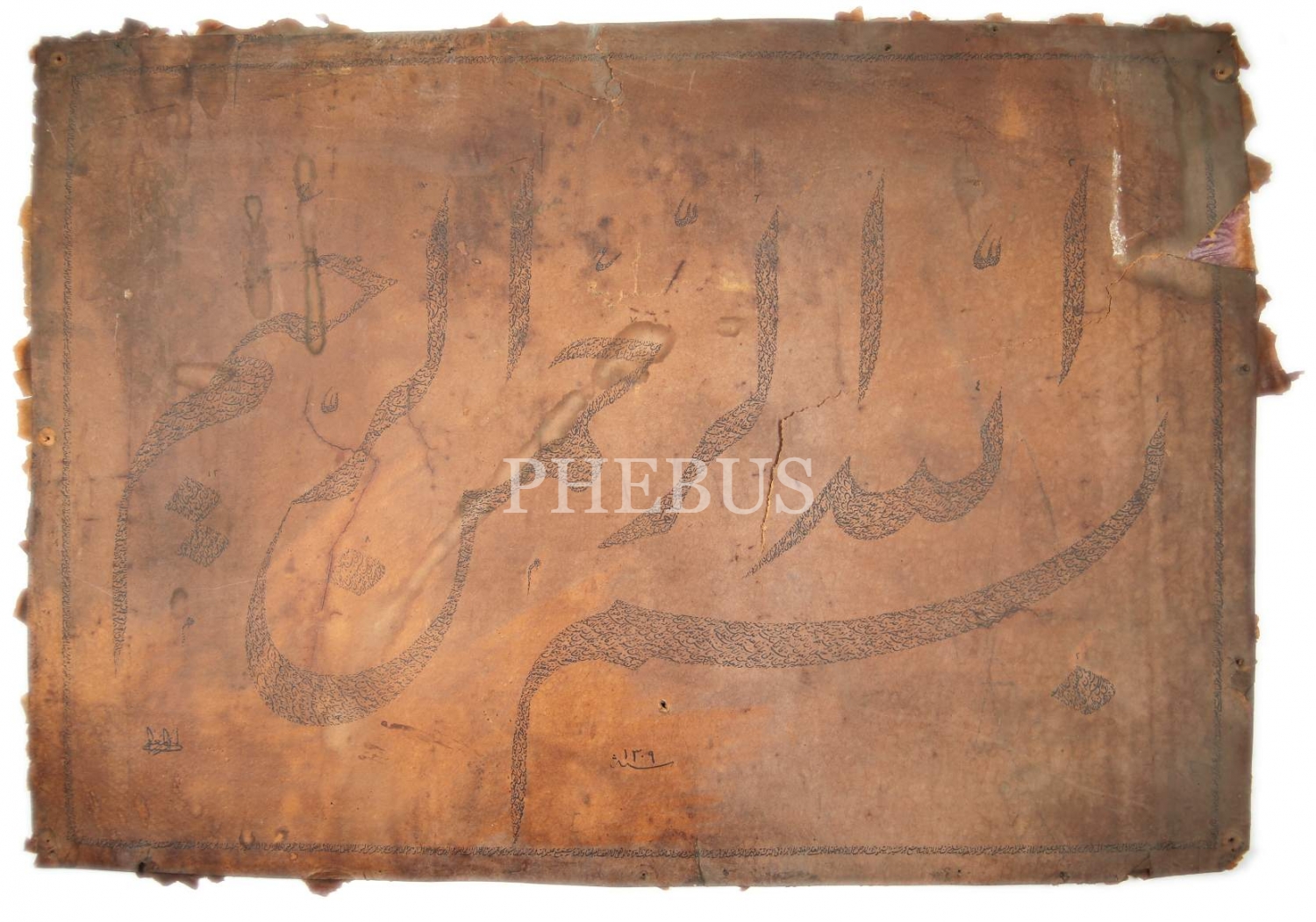 Erken Dönem Baskı Gubarî Yazı "Besmele", 1309 tarihli, 44x63 cm, yıpranmış ve yırtılmış haliyle