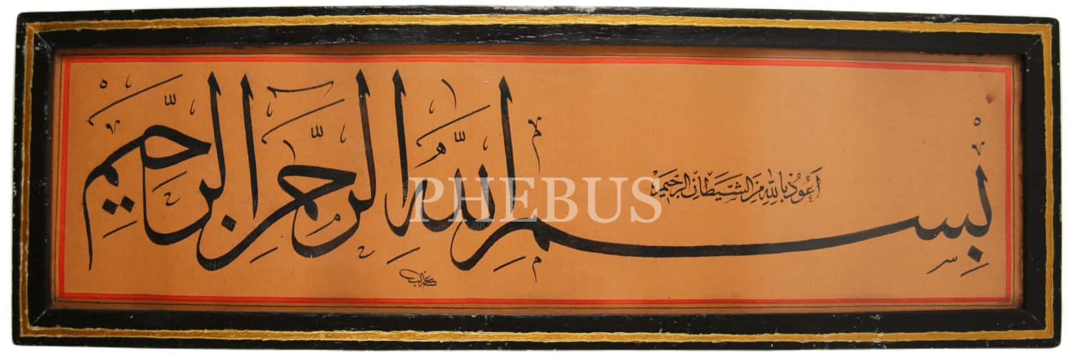 "Galib" Ketebeli Sülüs Besmele, çerçeveli, 12x46 cm
