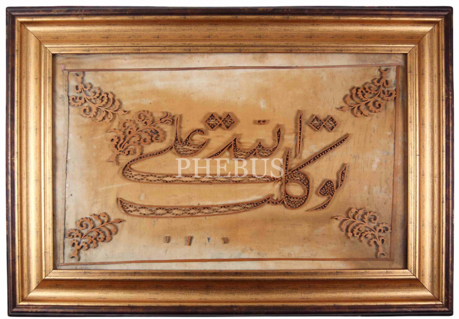 Naht Sanatı ile Ta'lik Yazı, "Tevekkeltü alâ Allah [Allah'a güvenip dayandım]", 1331[?] tarihli, çerçeveli, 28x46 cm