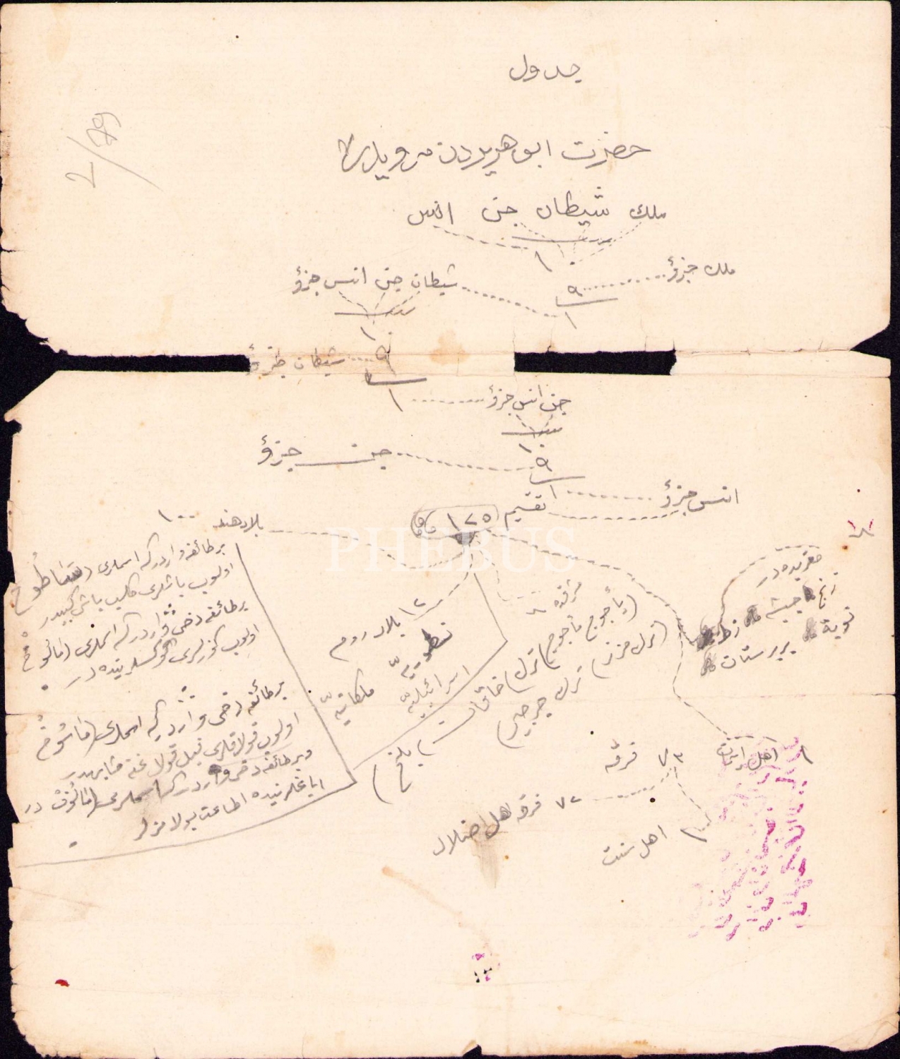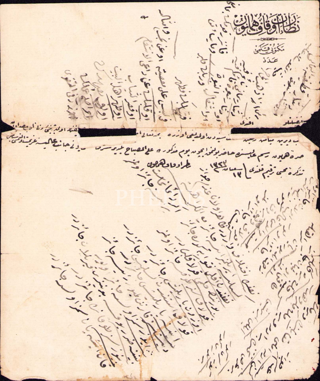 Osmanlıca Nezâret-i Evkâf-ı Hümâyun Antetli, 1323 Tarihli Surre Alayı Konulu Evrak Üzerinde Dinî Hükümlere Dair Karalamalar, 20x24 cm, epey yıpranmış ve kenarları yırtık haliyle