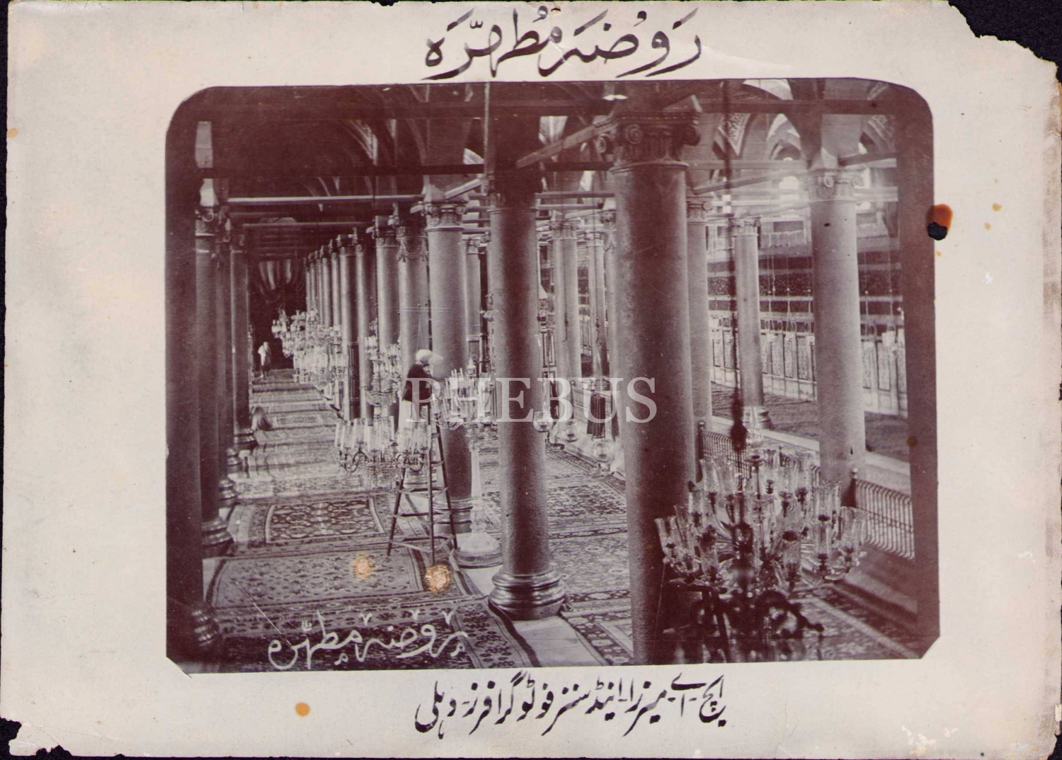 Ravza-i Mutahhara [Mescid-i Nebevî'de Hz. Muhammed'in kabri ile minberi arasındaki bölüm], 15x21 cm, köşeleri yırtık ve yorgun haliyle