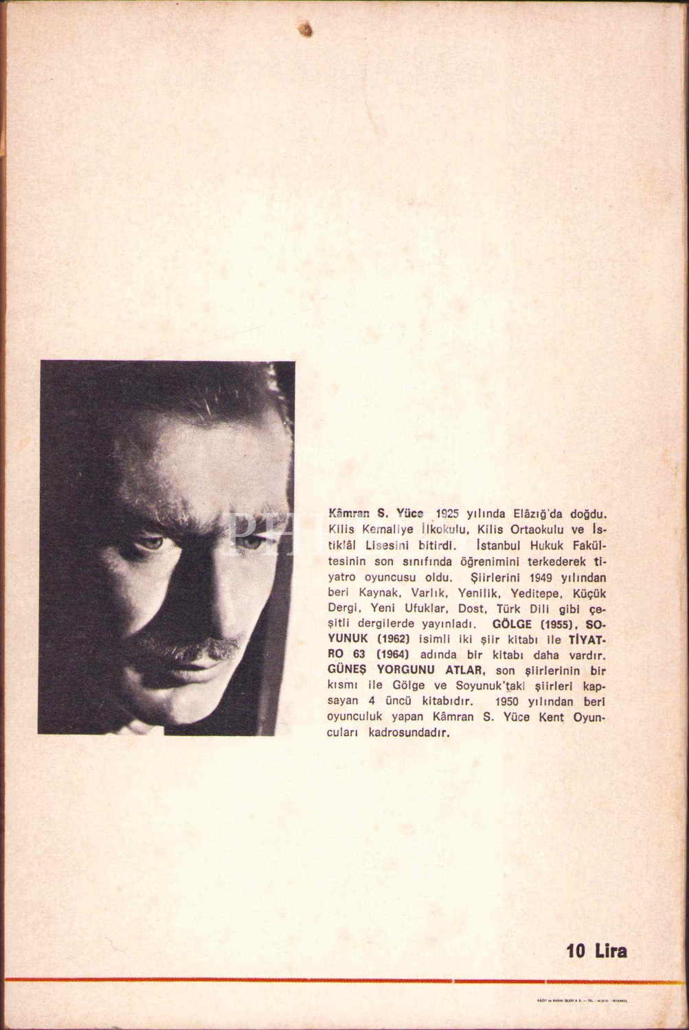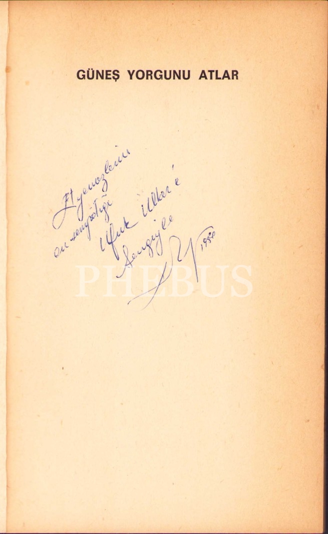 Kâmran S. Yüce'den İthaflı ve İmzalı ''Güneş Yorgunu Atlar'', Kent Yayınları, 1970
