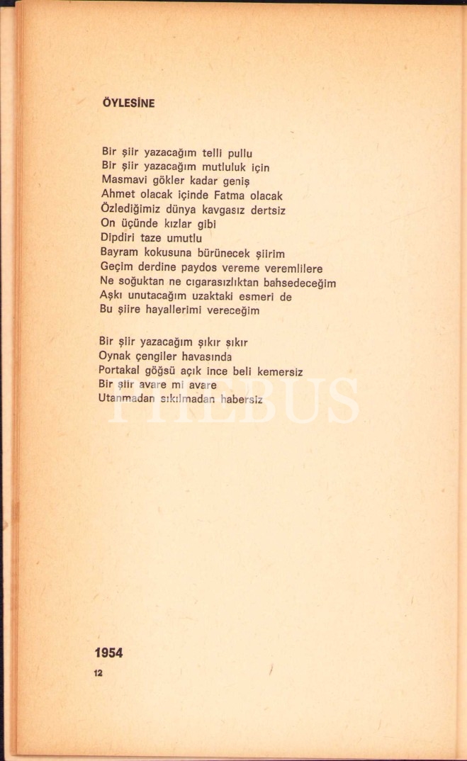 İthaf, ''Et yemezlerin en sevdiği Ufuk Ülker'e sevgiyle - 1980'' şeklindedir.