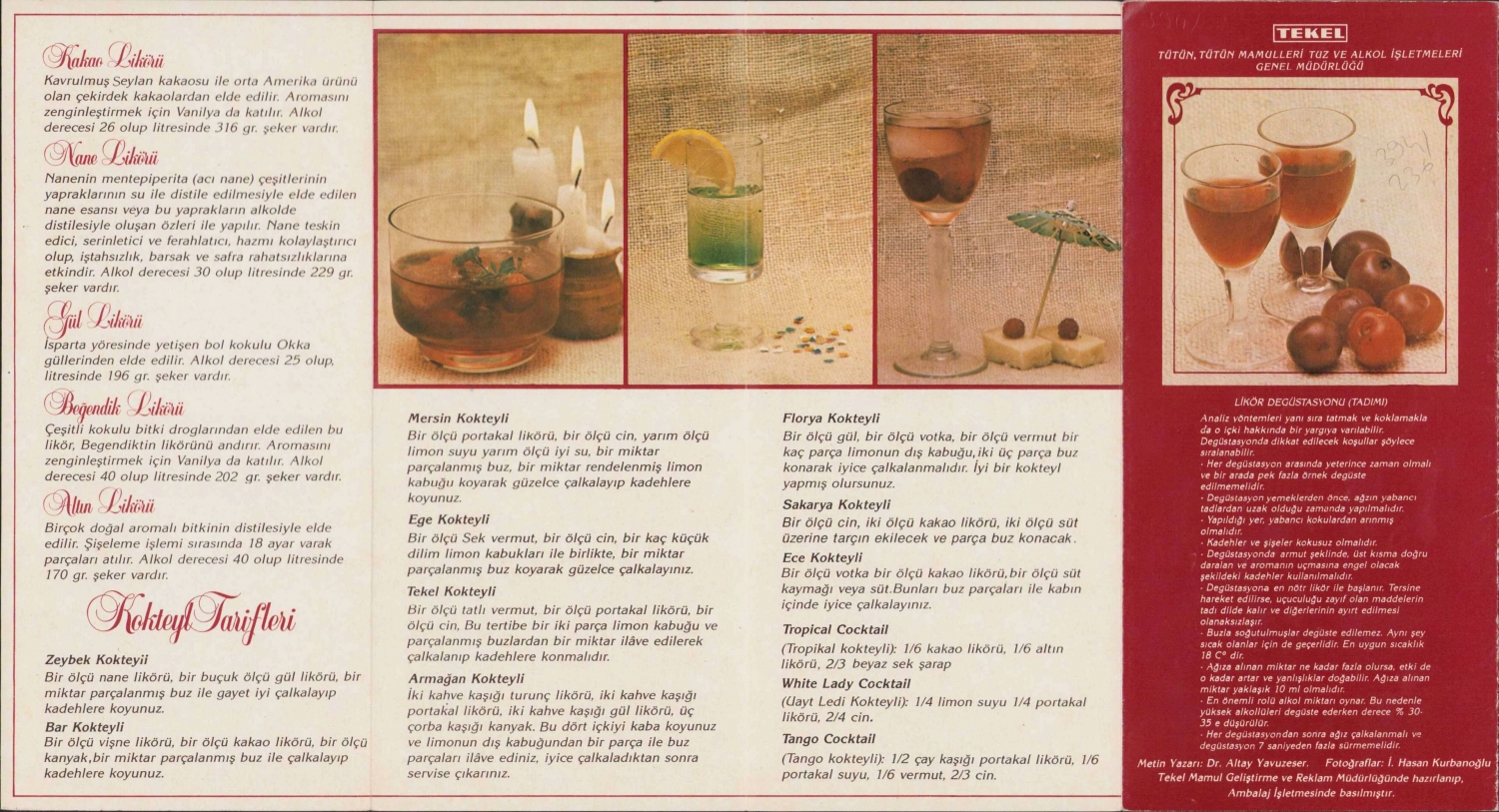 Tekel Likörleri tanıtım broşürü, katlamalı 5 yaprak, 10x21cm