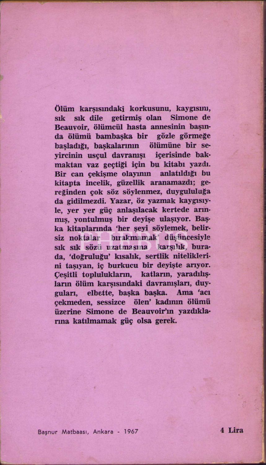 Çeviren Bilge Karasu'dan Sevgi Sanlı'ya İthaflı ve İmzalı ''Sessiz Bir Ölüm'' (Simone de Beauvoir), Bilgi Yayınevi, Ankara - 1966