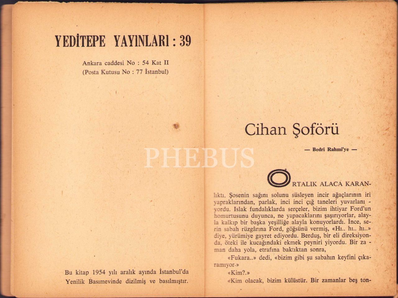 Samim Kocagöz'den İthaflı ve İmzalı ''Cihan Şoförü'', Yeditepe Yayınları, Aralık 1954