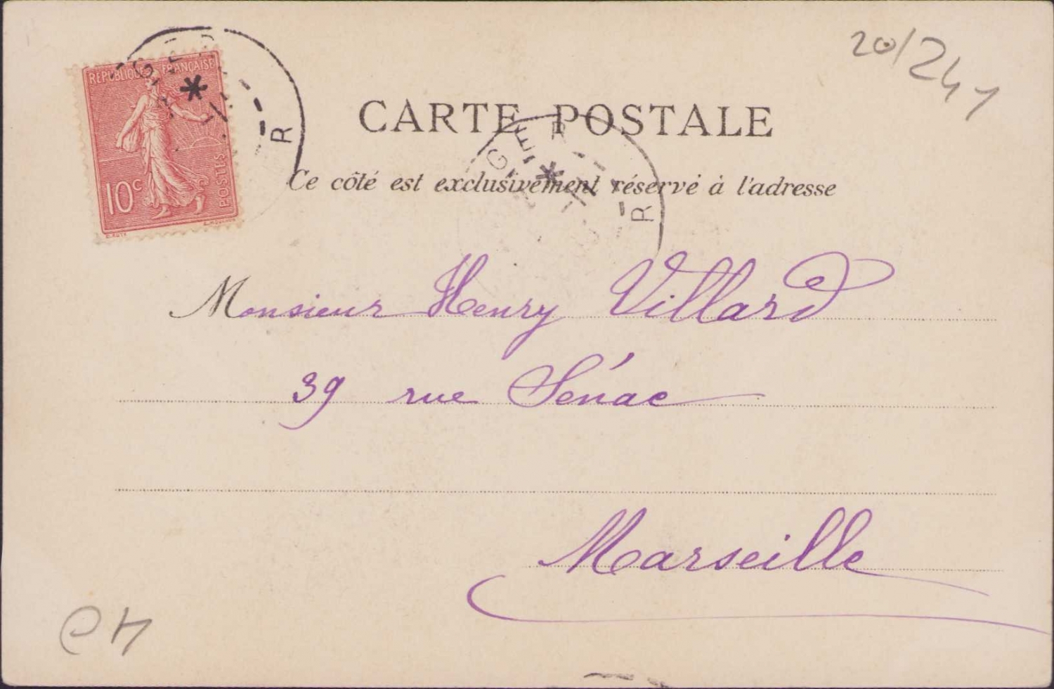 Cezayirli güzel Fatma, postadan geçmiş, pullu, Marsilya adresli