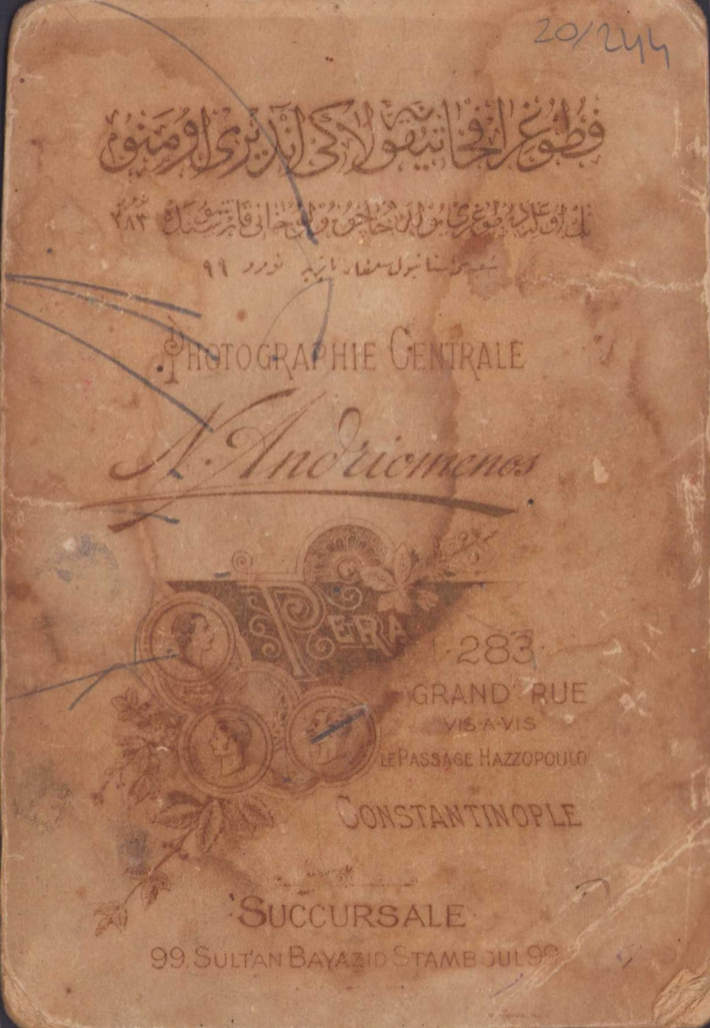 Osmanlı dönemi beyefendi portresi, Foto N. Andriomenos, stüdyo çekim, kabin fotoğrafı, Constantinople, 10,5x15cm