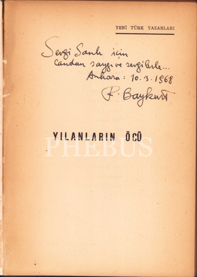 İthaf, ''Sevgi Sanlı için candan saygı ve sevgilerle... Ankara: 10.3.1968 F. Baykurt'' şeklindedir.