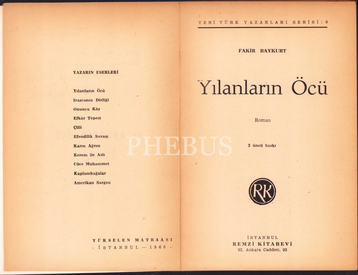 Fakir Baykurt'tan Sevgi Sanlı'ya İthaflı ve İmzalı ''Yılanların Öcü'', Remzi Kitabevi, İstanbul 1968
