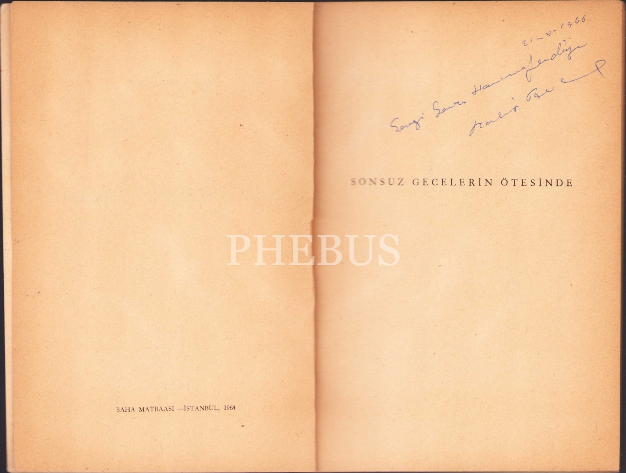 Halit Fahri Ozansoy'dan Sevgi Sanlı'ya İthaflı ve İmzalı ''Sonsuz Gecelerin Ötesinde'', Baha Matbaası - İstanbul 1964