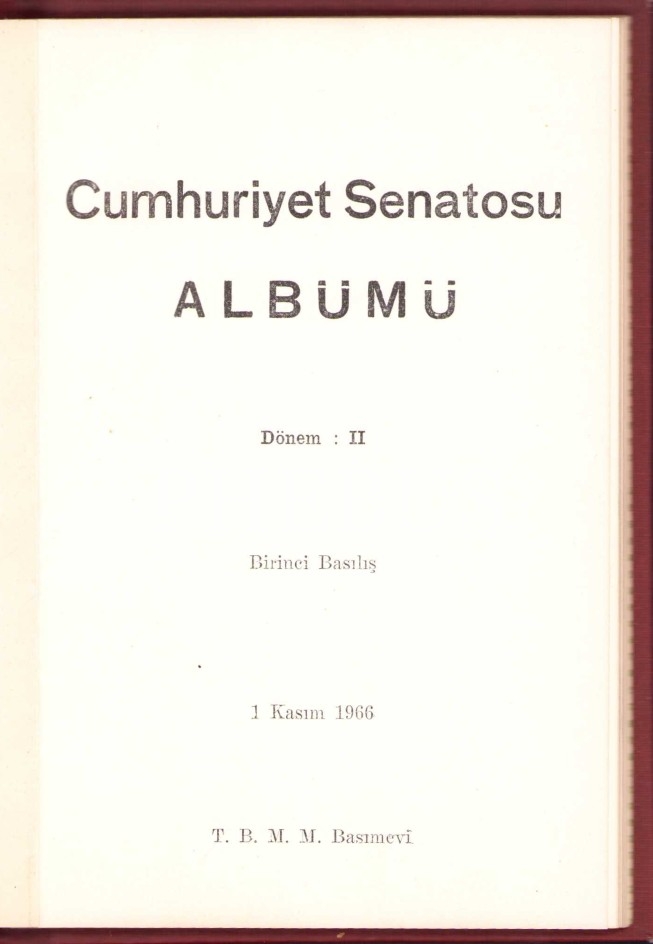 Cumhuriyet Senatosu Albümü - Dönem: II, Birinci Basılış: 1 Kasım 1966, T.B.M.M. Basımevi, 67 sayfa, 12x17 cm