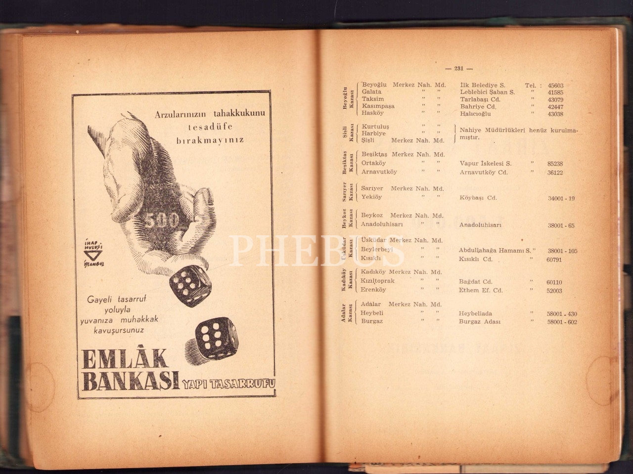 Haritalı Şehir Rehberi İstanbul, haz. Hayrettin Lokmanoğlu, İstanbul Halk Basımevi, 1955, harita ekleri ile birlikte, 263 s., 14x20 cm, yıpranmış haliyle