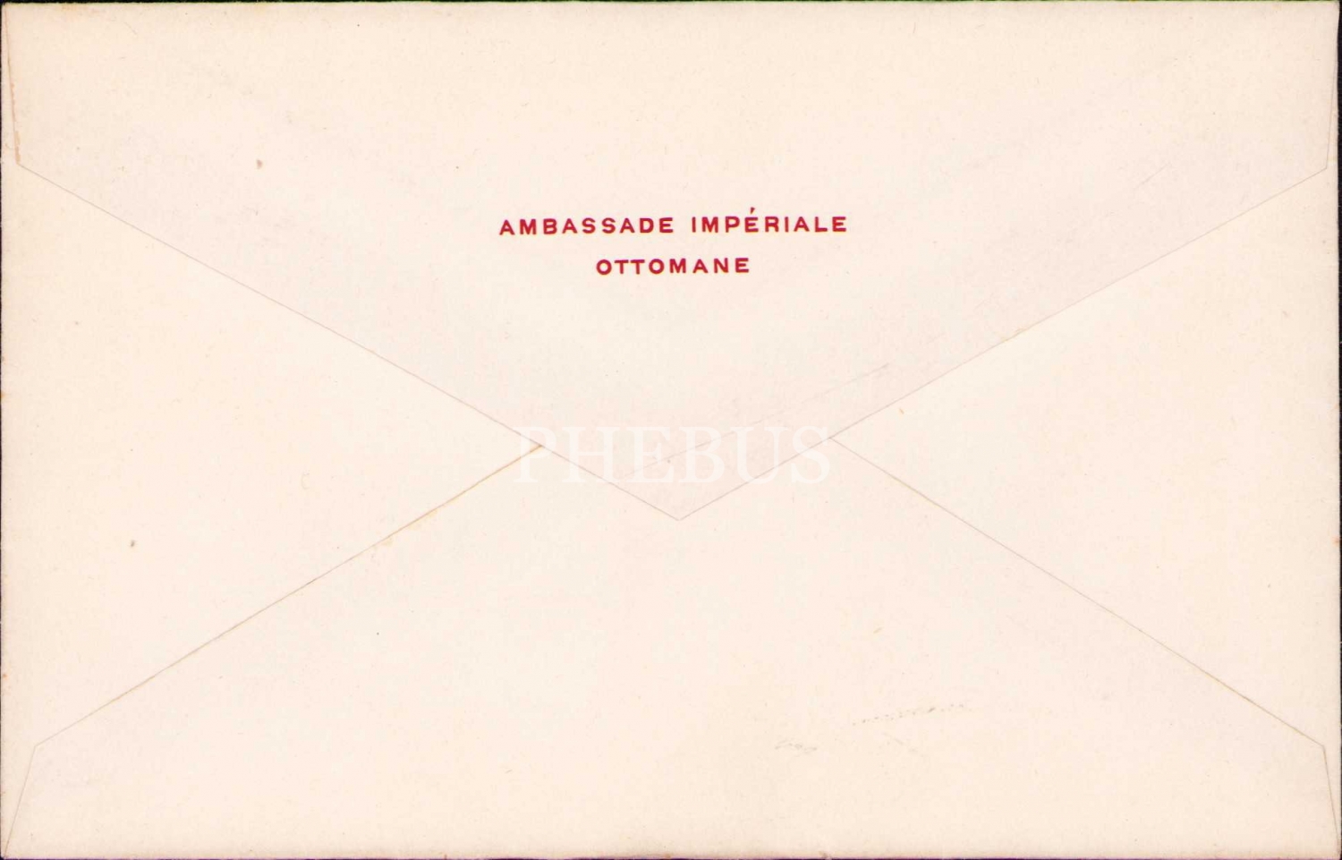 Ambassade Imperiale Ottomane [Osmanlı İmparatorluğu Elçiliği] antetli kart ve zarfı, 10x16 cm