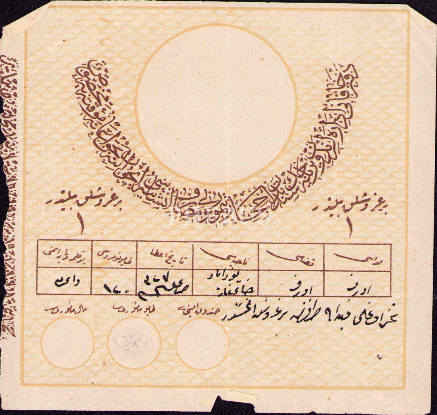 Osmanlıca Hicaz Demiryolu için yardım makbuzu, 1327 tarihli, 14x14 cm