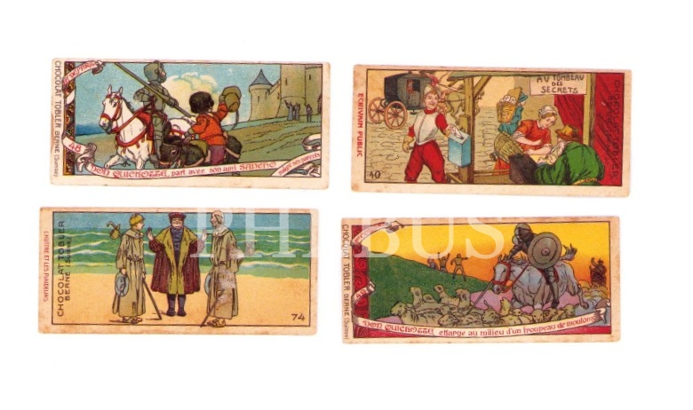 4 adet çikolata kartı, arka yüzleri 4 dilde (Osmanlıca, Ermenice, Fransızca ve İngilizce) açıklamalı, 3x7 cm