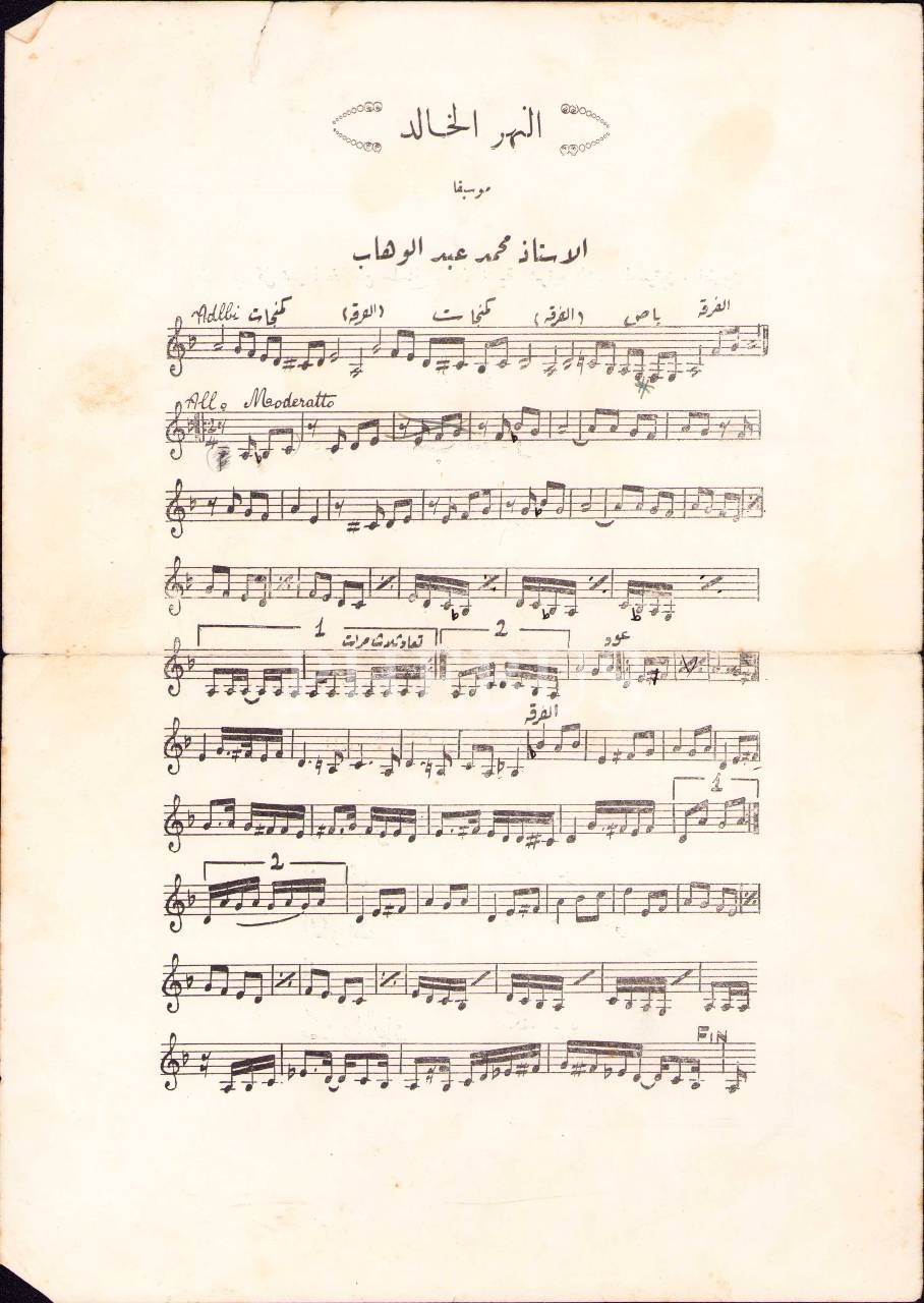 Arapça nota, "en-Nehrü'l-Hâlid", Üstaz Muhammed Abdülvehhab, 25x35 cm, kenarları yırtık haliyle
