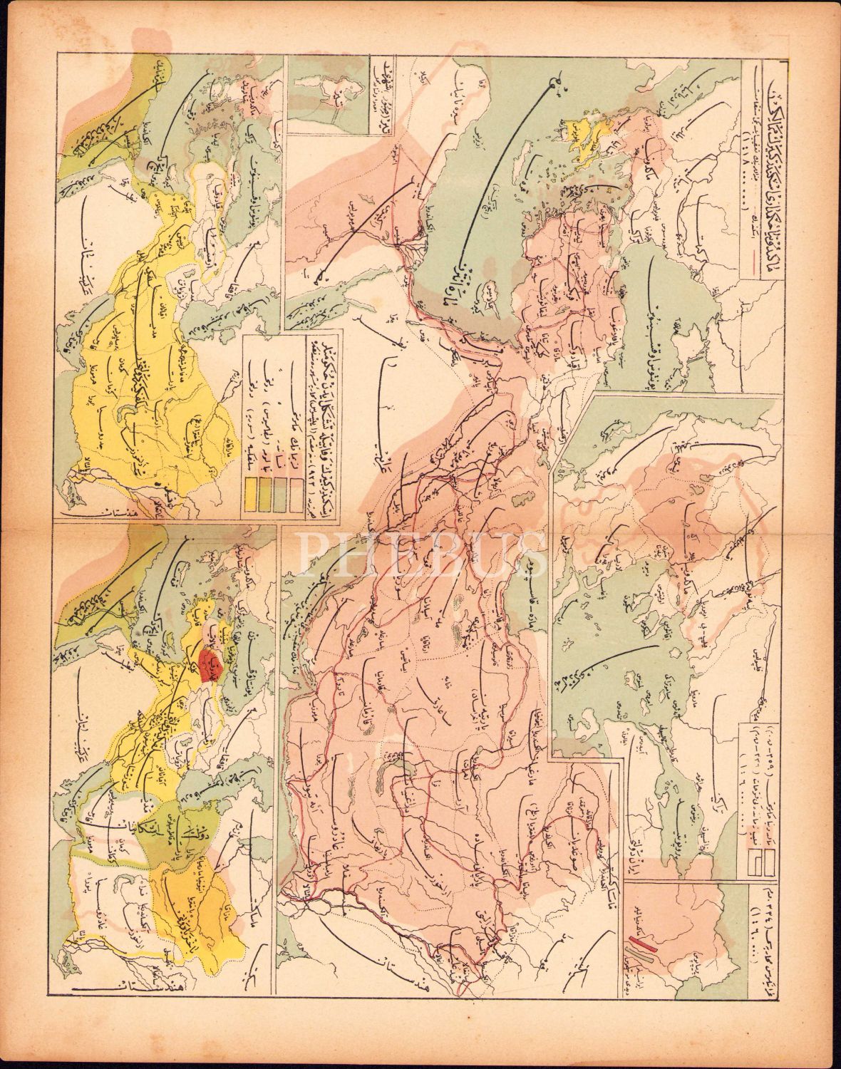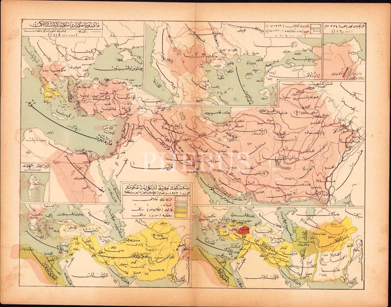 Osmanlıca Makedonya Hükümdarı Büyük İskender'in toprakları haritası, 26x32 cm, bir kenarı yırtık haliyle