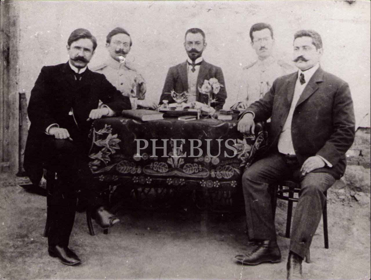 Talat Paşa'nın yer aldığı topluluk hatıra fotoğrafı, ikinci baskı, 18x24 cm, bir kenarı yırtık haliyle