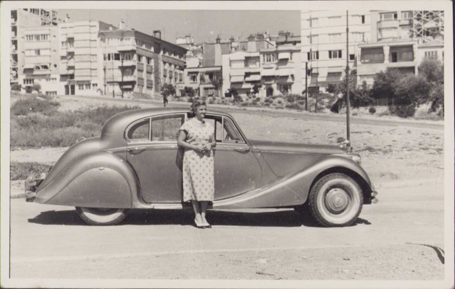 Jaguar marka araba önünde poz veren hanımefendi, 13,5x8,5cm