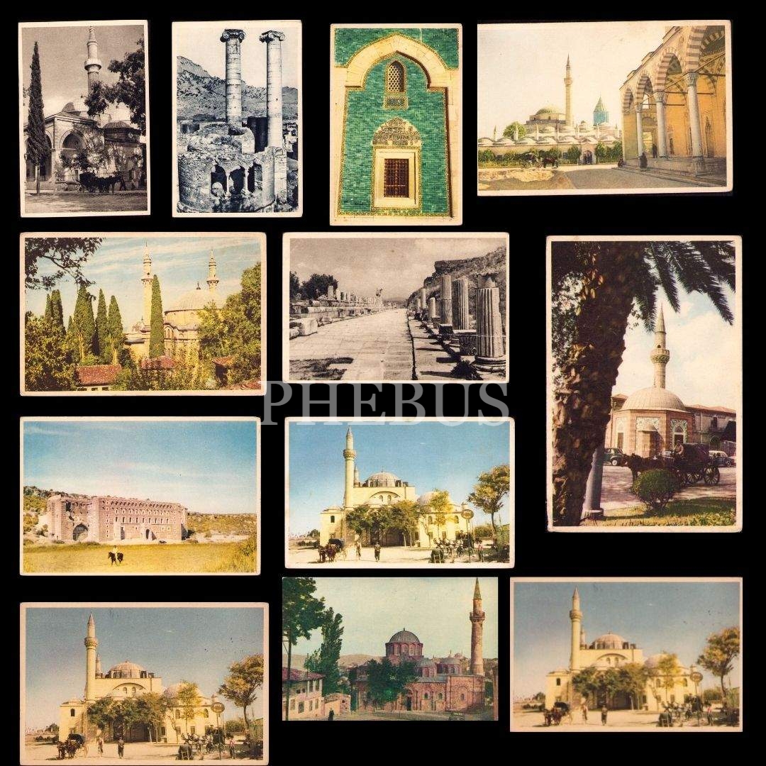 Tarihî yapı görselli 12 adet kartpostal, bazıları yıpranmış haliyle