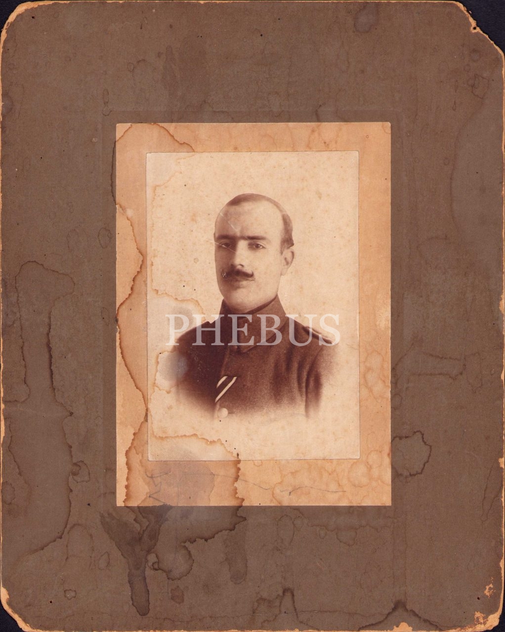 Subay fotoğrafı, paspartulu, 10x14 cm, yıpranmış ve köşeleri yırtık haliyle