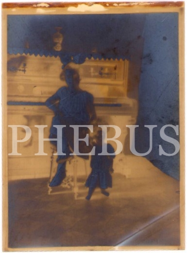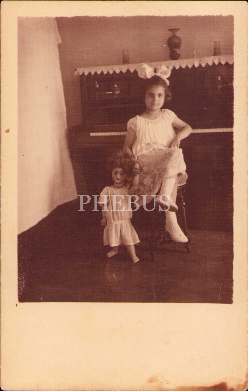 Osmanlıca antetli zarf ve oyuncaklı kız çocuğu fotoğrafı ile negatifi, zarf epey yıpranmış haliyle