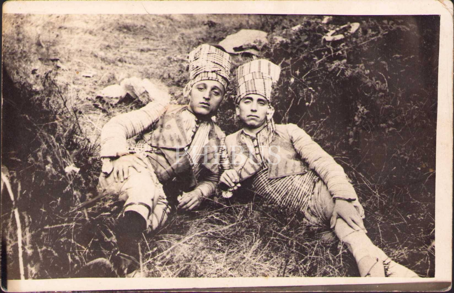 Yöresel kıyafetli iki kişi, yorgun haliyle