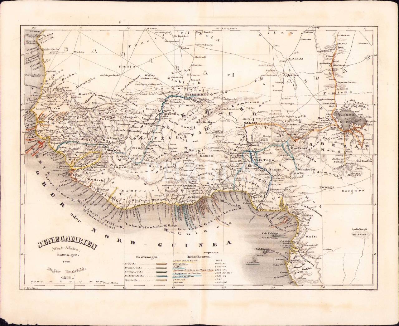 Batı Afrika haritası, 1857, 23x28 cm, bir kenarı yıpranmış haliyle