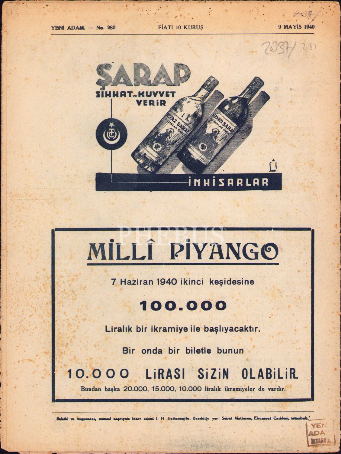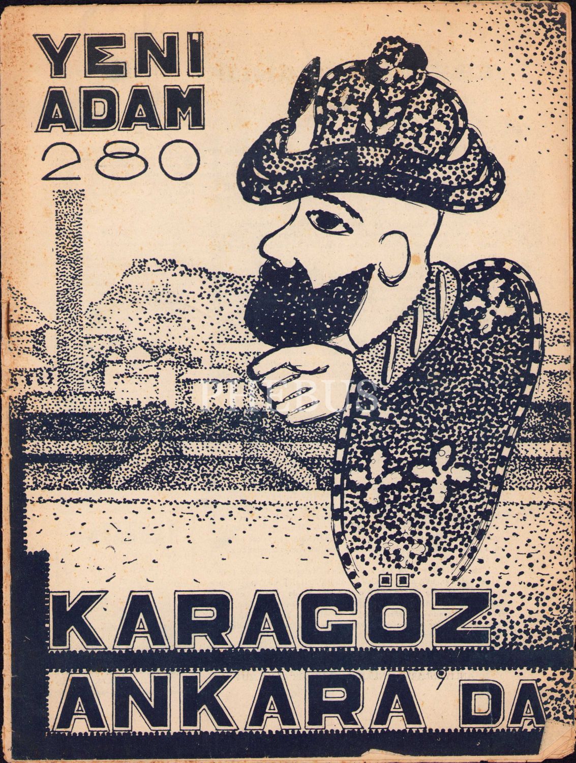 Yeni Adam dergisi 280. sayı, 9 Mayıs 1940, Karagöz Ankara'da kapak yazısıyla, 24x31 cm, yıpranmış haliyle
