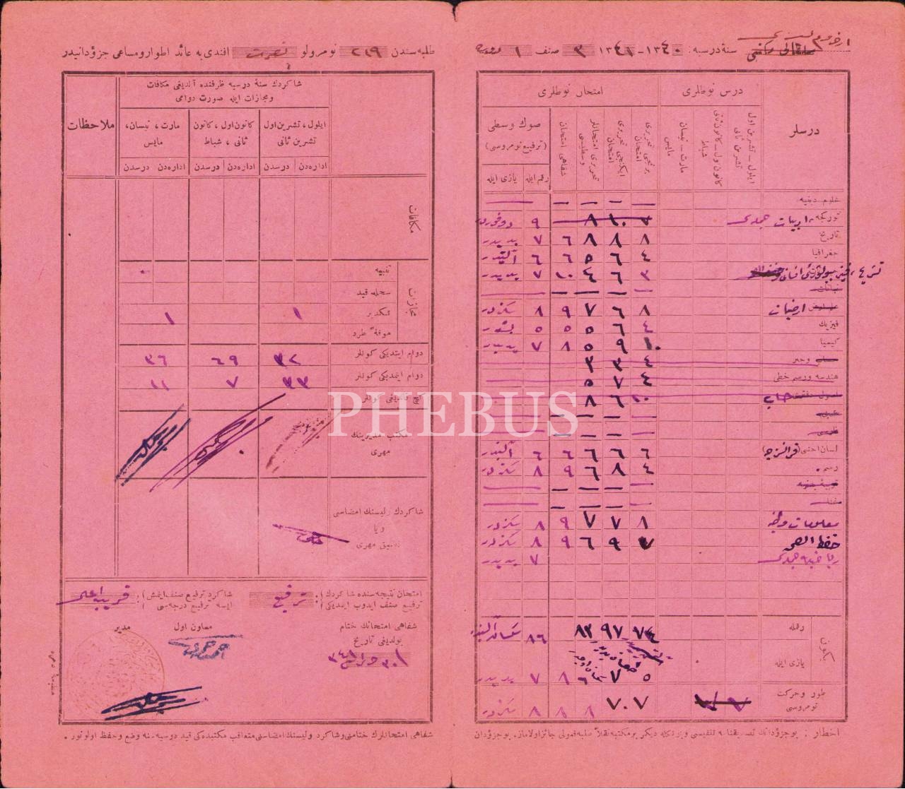 Erzurum Lisesi etvâr ve mesâî cüzdanı [öğrenci karnesi], 1331, 22x25 cm, kenarları yıpranmış haliyle