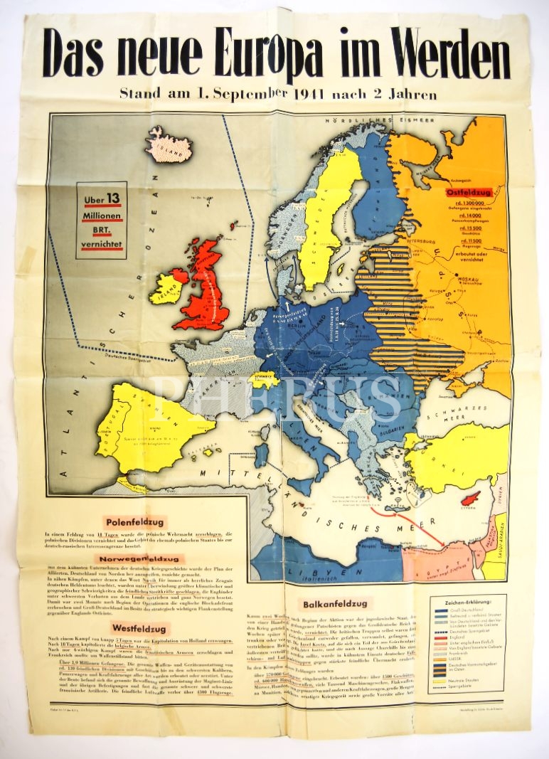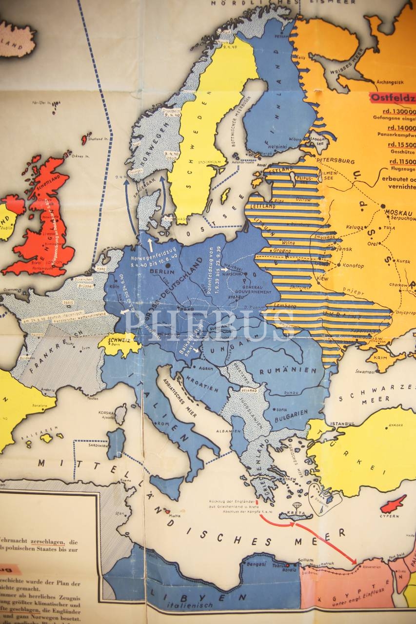 Almanca harita, "Yeni Avrupa Çiziliyor", 83x118 cm, tamirli ve yıpranmış haliyle