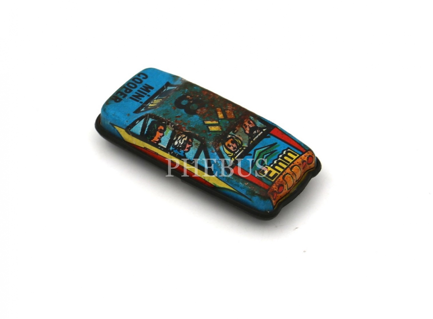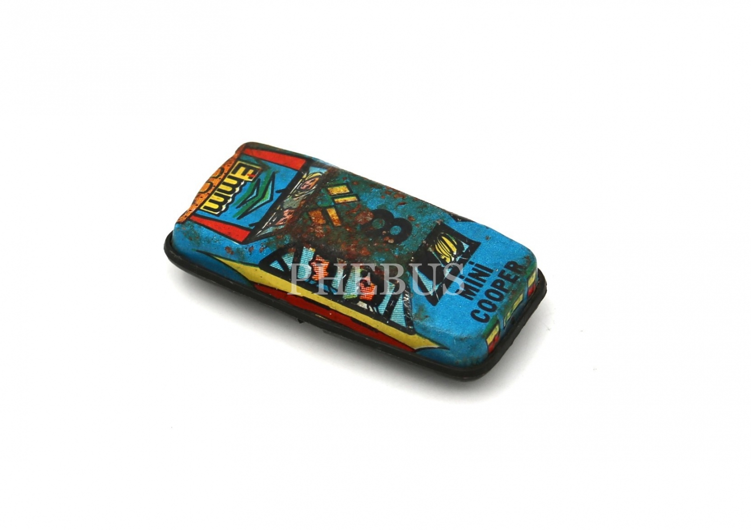 Türk malı Gürel marka küçük boy Mini Cooper modeli, 8x4x2 cm, üstünde pas mevcut haliyle