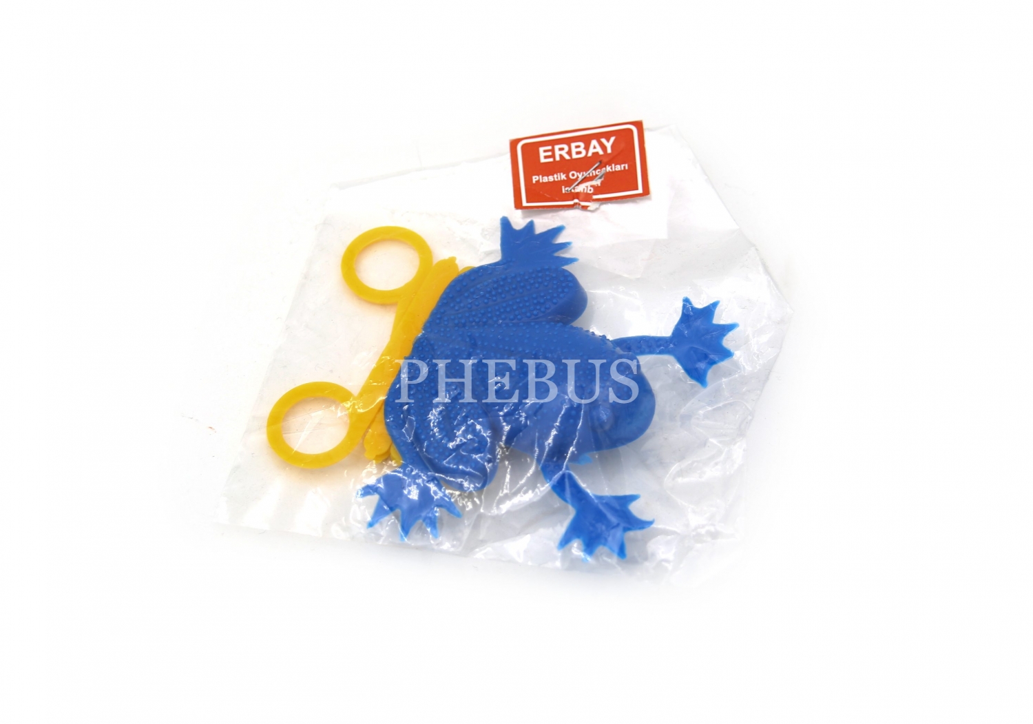 Türk malı Erbay Plastik Oyuncakları - İstanbul yazılı paketinde oyuncak kurbağa, 10x7 cm