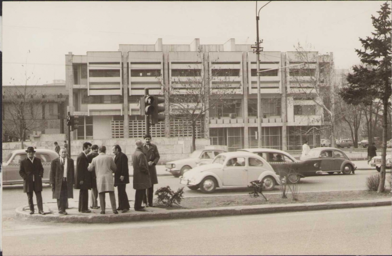 Ankara şehir manzarası, eski arabalar ve trafik detaylı, 14x9cm
