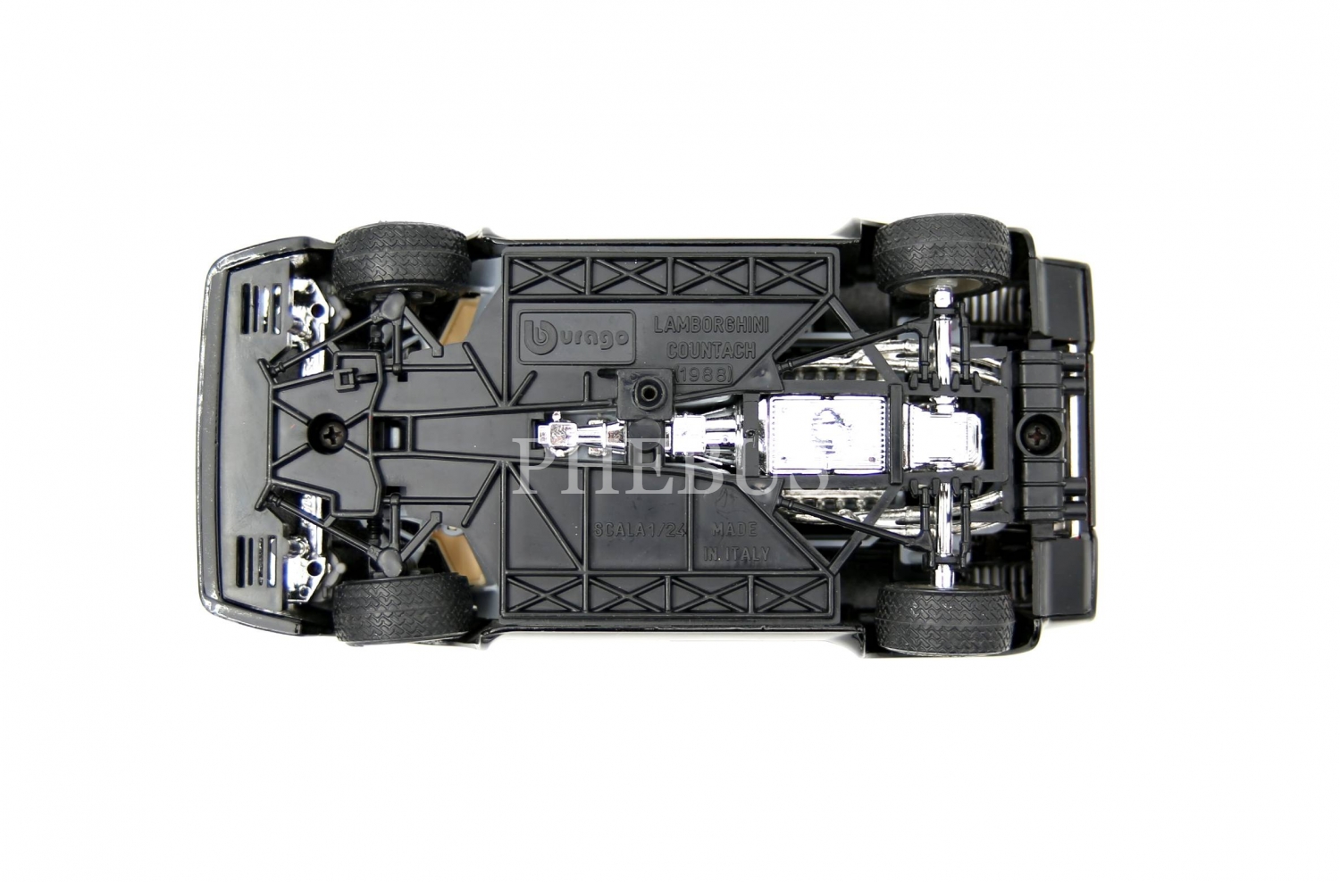 Burago marka Lamborghini Countach (1988) modeli, Made in Italy, 16x7x4 cm, yan aynaları ve ön logosu eksik haliyle