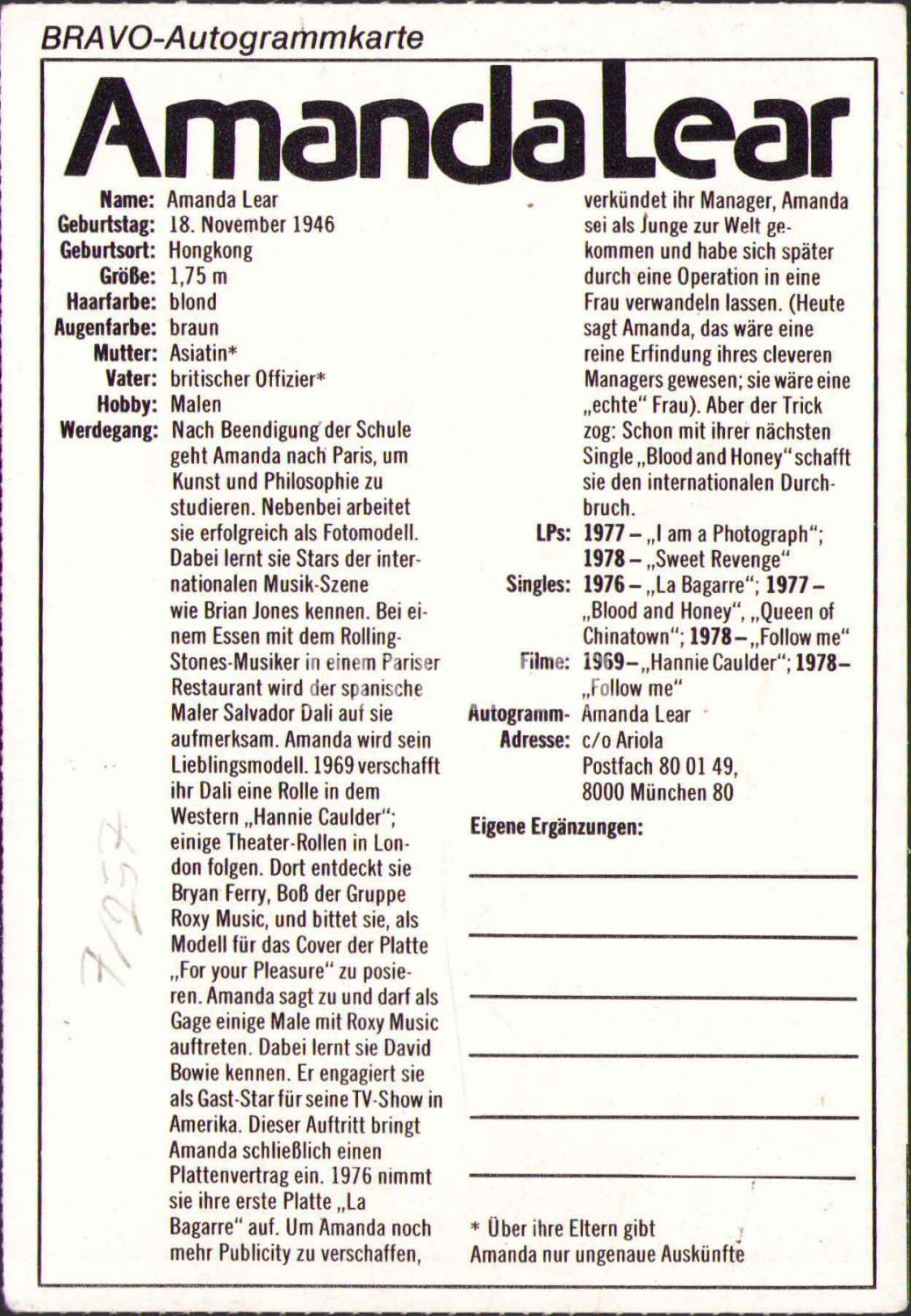 Amanda Lear kartı, Bravo - Autogrammkarte, 10x15 cm