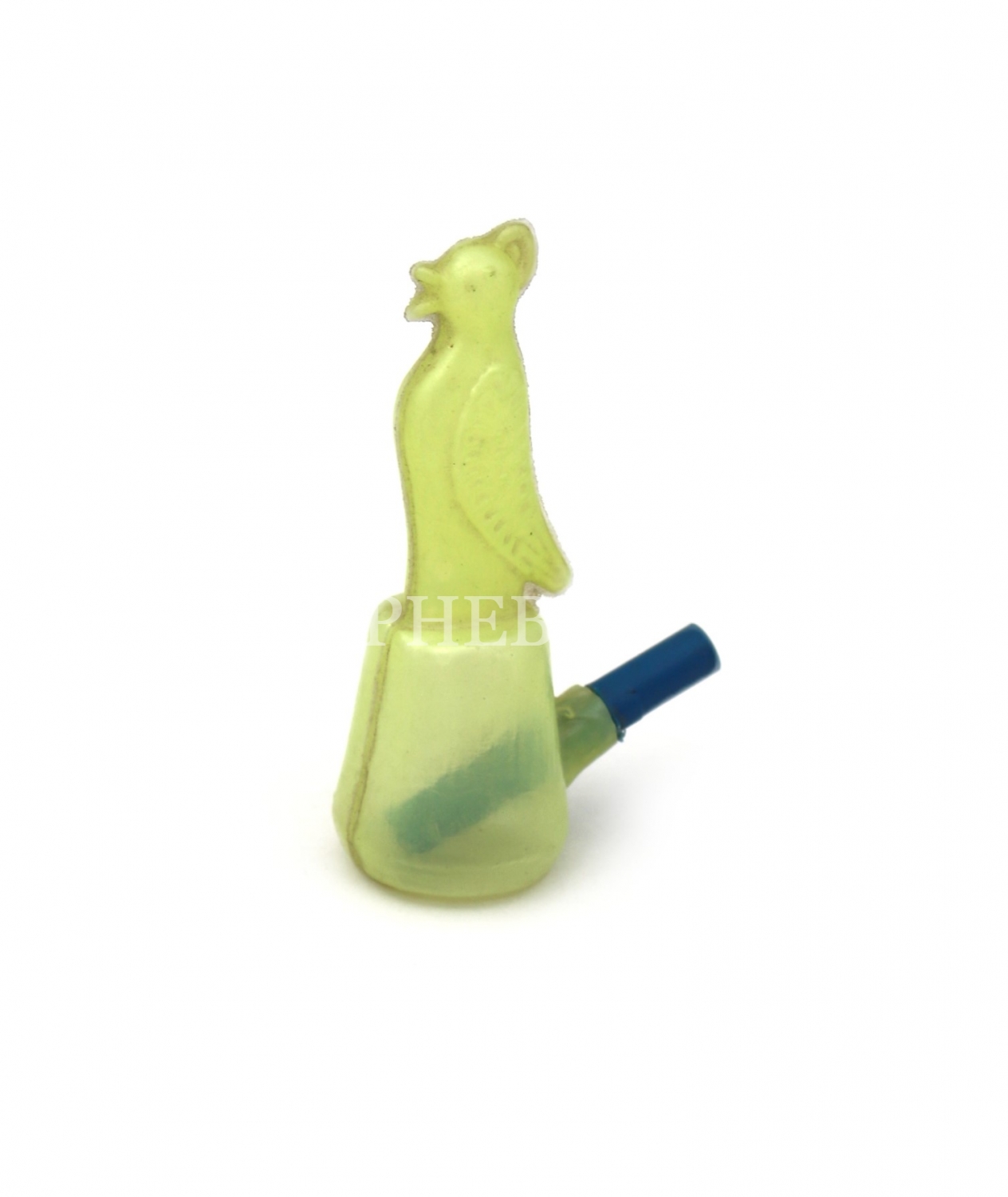 Haznesine su eklenip, düdüğü üflendiği takdirde kuş sesi çıkaran Türk malı şişme plastik oyuncak, 3x9 cm