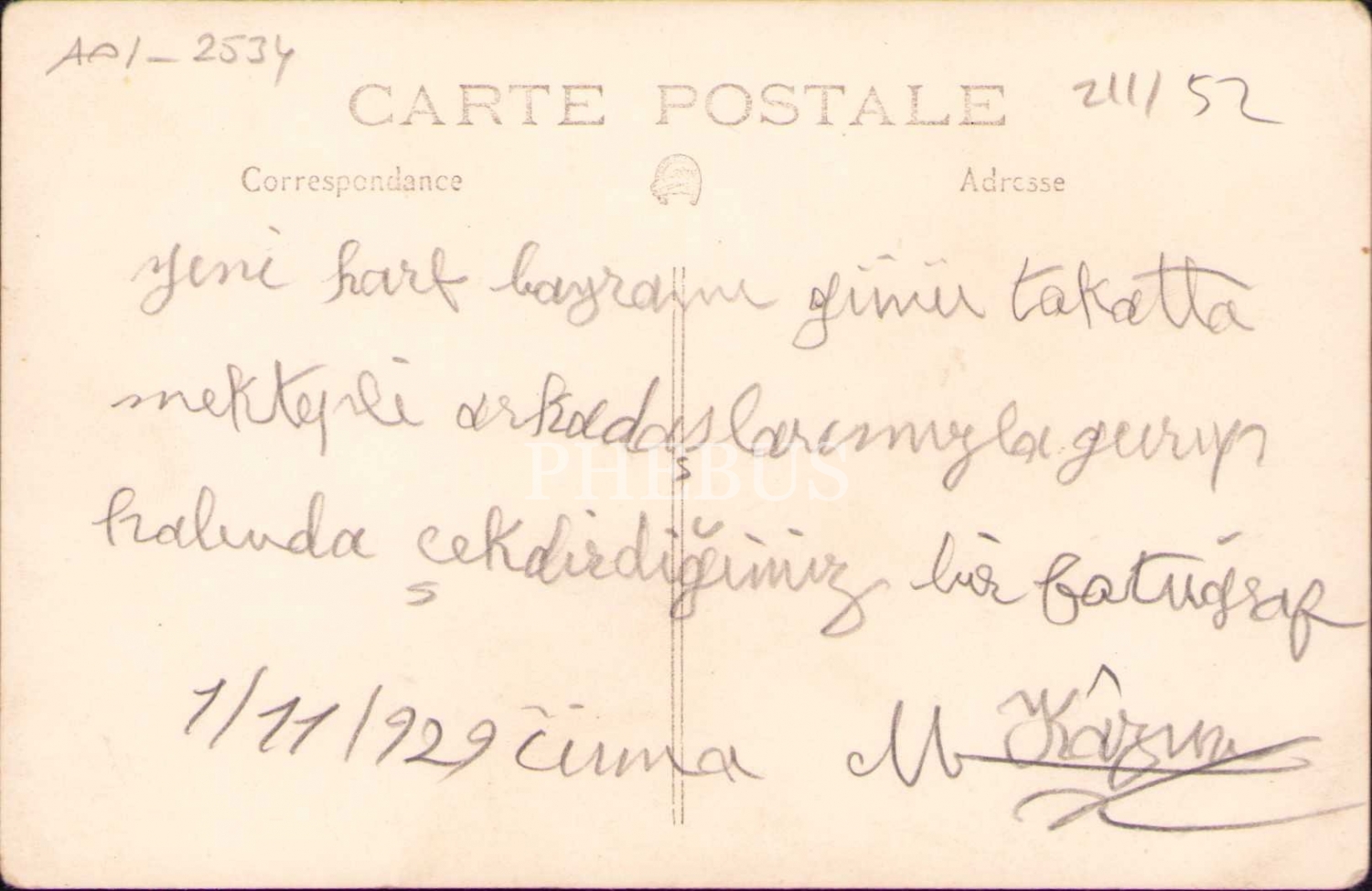 Arkasında Tokat'ta Yeni Harf Bayramı gününde çektirildiği belirtilmiştir.