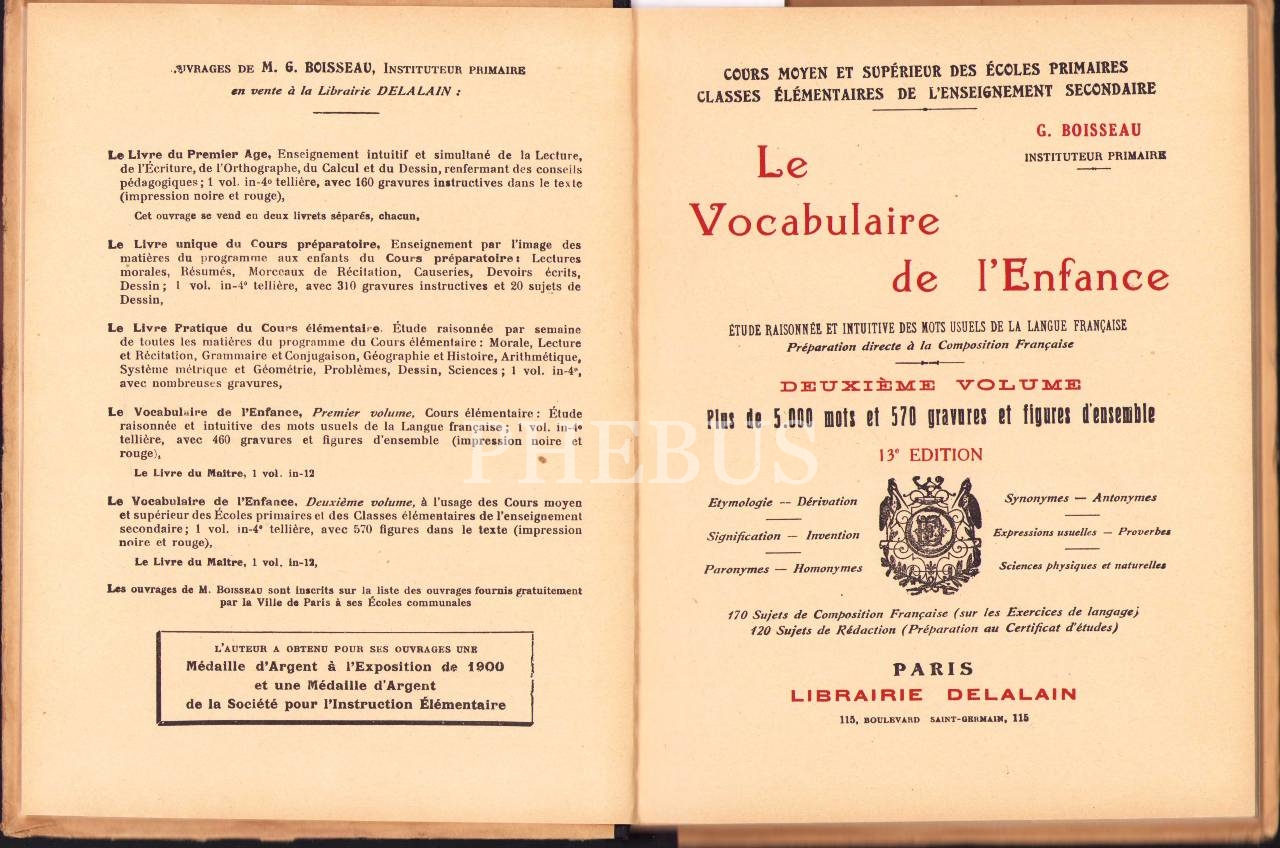 Fransızca Le Vocabulaire de l'Enfance [2. cilt], G. Boisseau, Paris, 173 s., 17x21 cm, cildi yorgun haliyle